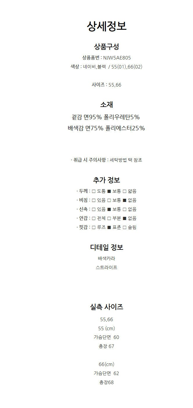| 1. 제품 소재 (섬유의 조성 또는 혼용률을 백분율로 표시, 기능성인 경우 성적서 또는 허가서) | 면95%,폴리우레탄5% |