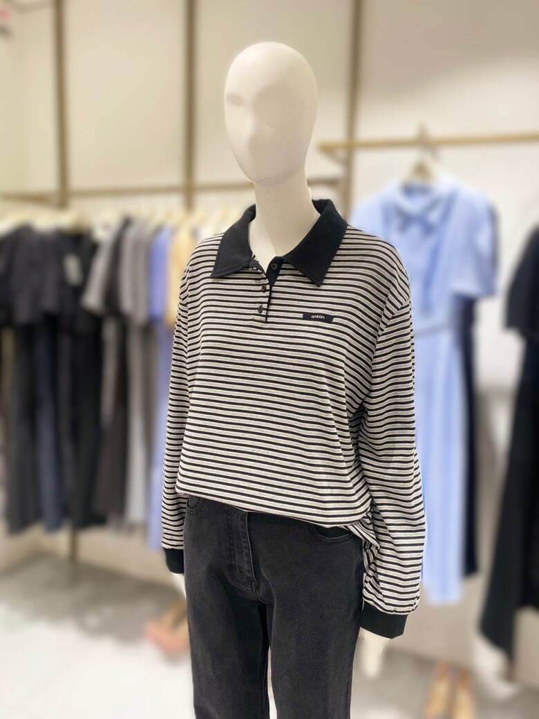 [on&on] 카라배색 스트라이프 루즈 티셔츠 NJW5AE805