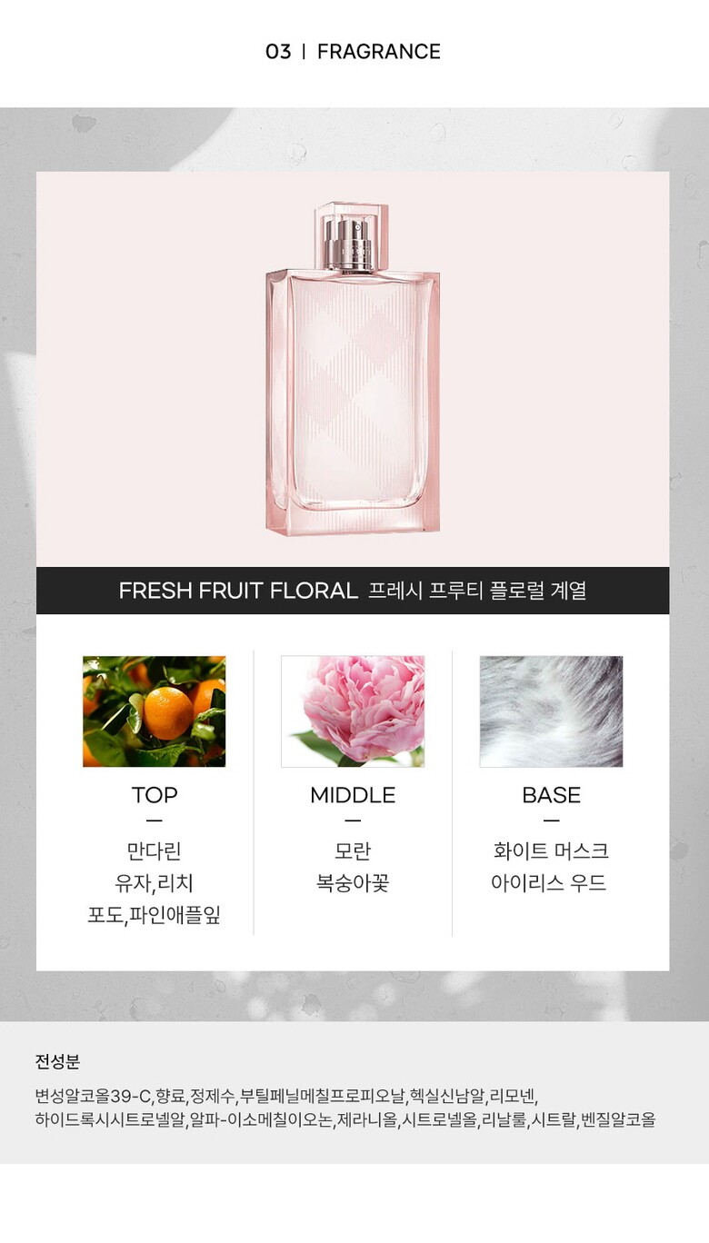| 9. 사용 시 주의사항 | ※ 화장품을 사용하여 다음과 같이 이상이 있을 경우 사용을 중지할 것이며 계속사용하면 증상을 악화시키므로 피부과 전문의 등에게 상담할 것 1. 사용상 붉은반점, 부어오름, 가려움증, 자극 등의 이상이 있을경우 2. 적용부의가 직사광선에 의해 위와 같은 이상이 있을 경우 3. 상처가 있는 부위, 습진 및 피부염 등의 이상이 있는 부위에는 사용을 하지 말것 4. 알코올류, 에탄올, 수용성(알코올 함유 제품에 해당)/ 화기에 주의할 것. |