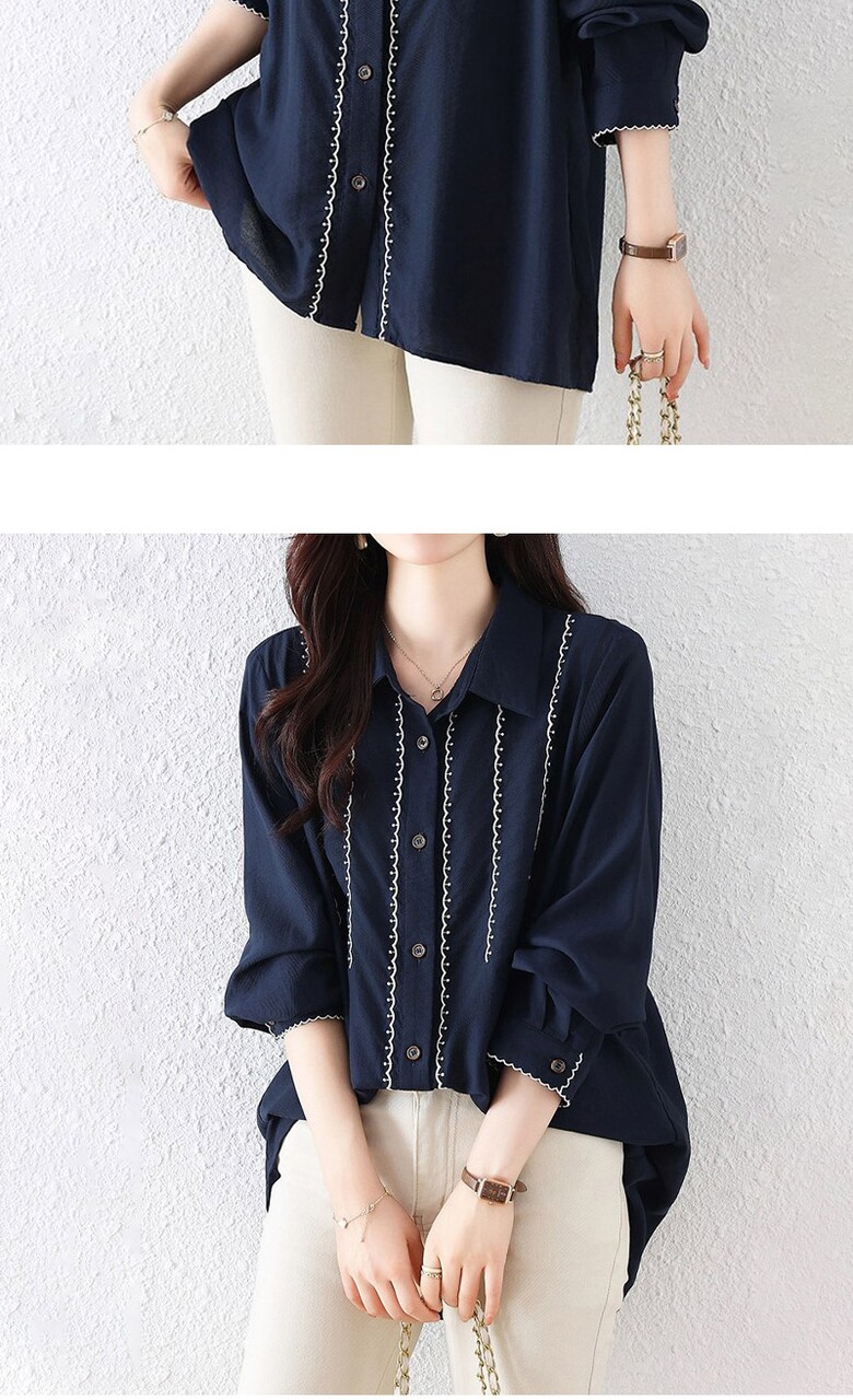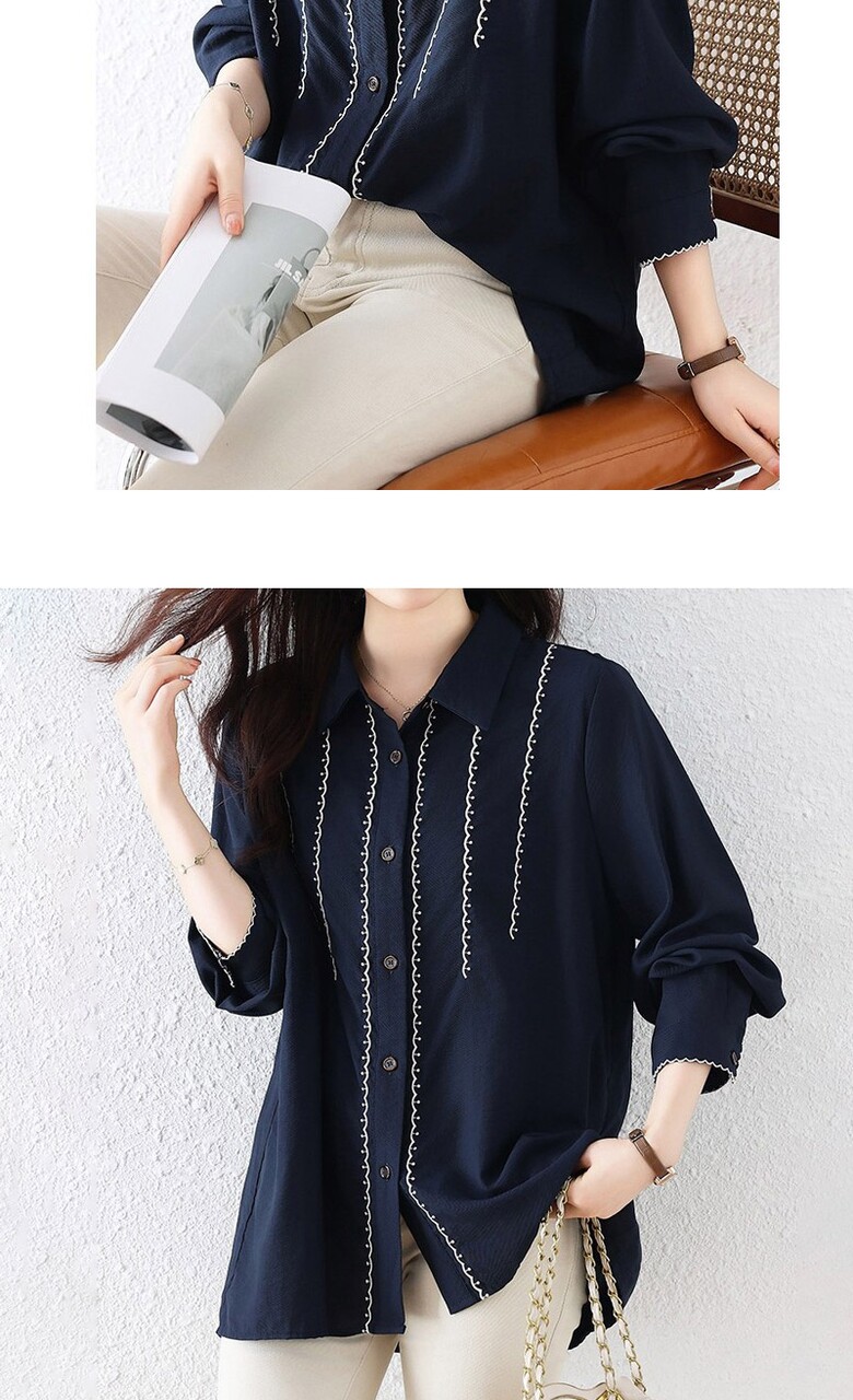 [~77까지]헤이스 라인 패턴 셔츠 블라우스