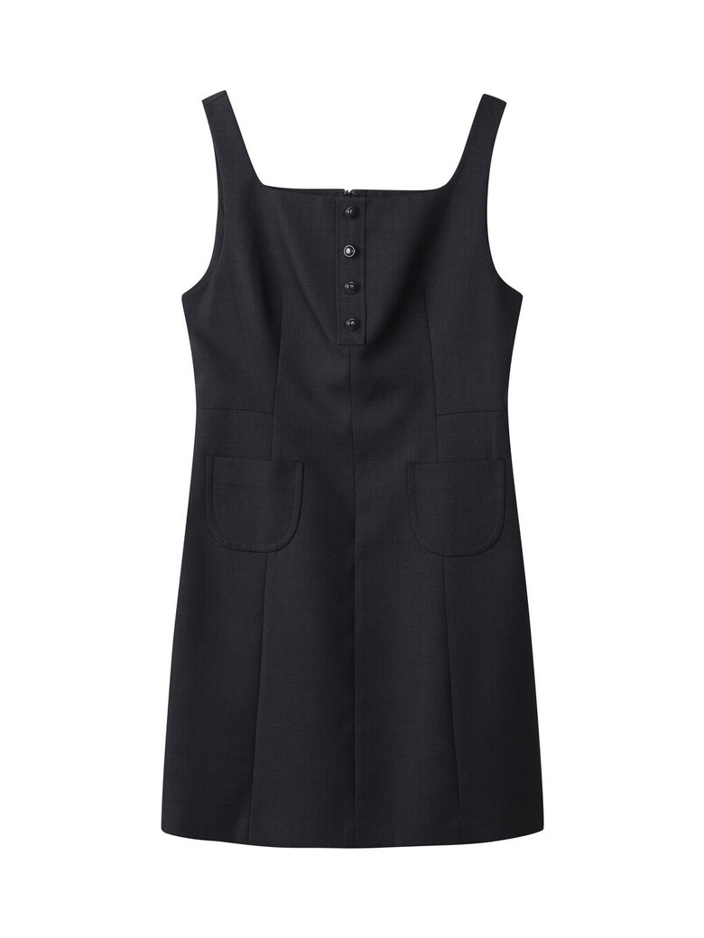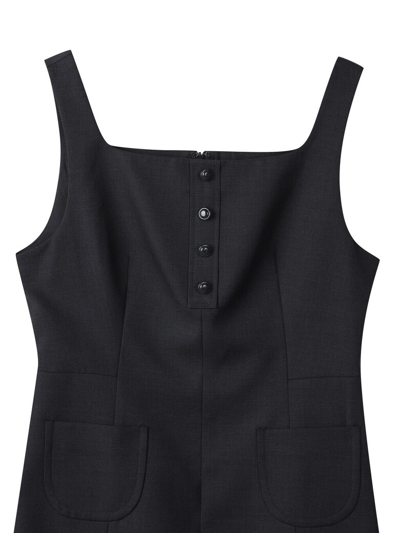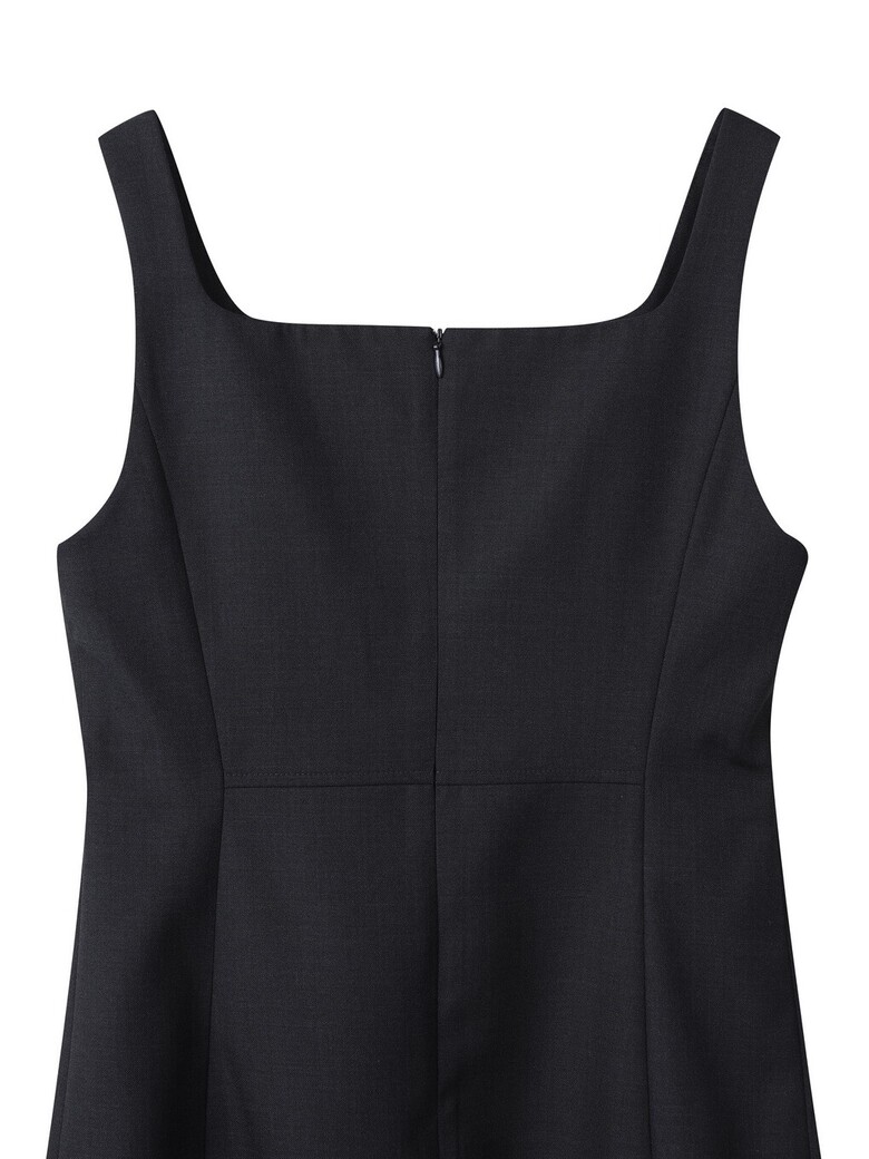 - 미디 기장의 스퀘어넥 슬리브리스 원피스입니다.