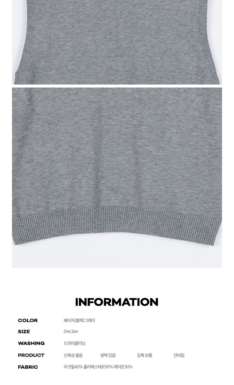 1. 제품 소재 (섬유의 조성 또는 혼용률을 백분율로 표시, 기능성인 경우 성적서 또는 허가서) | 아크릴40% 폴리에스테르30% 레이온30% |