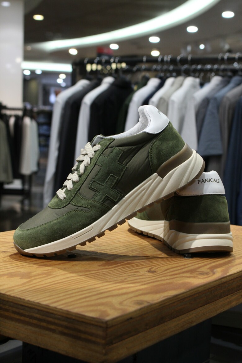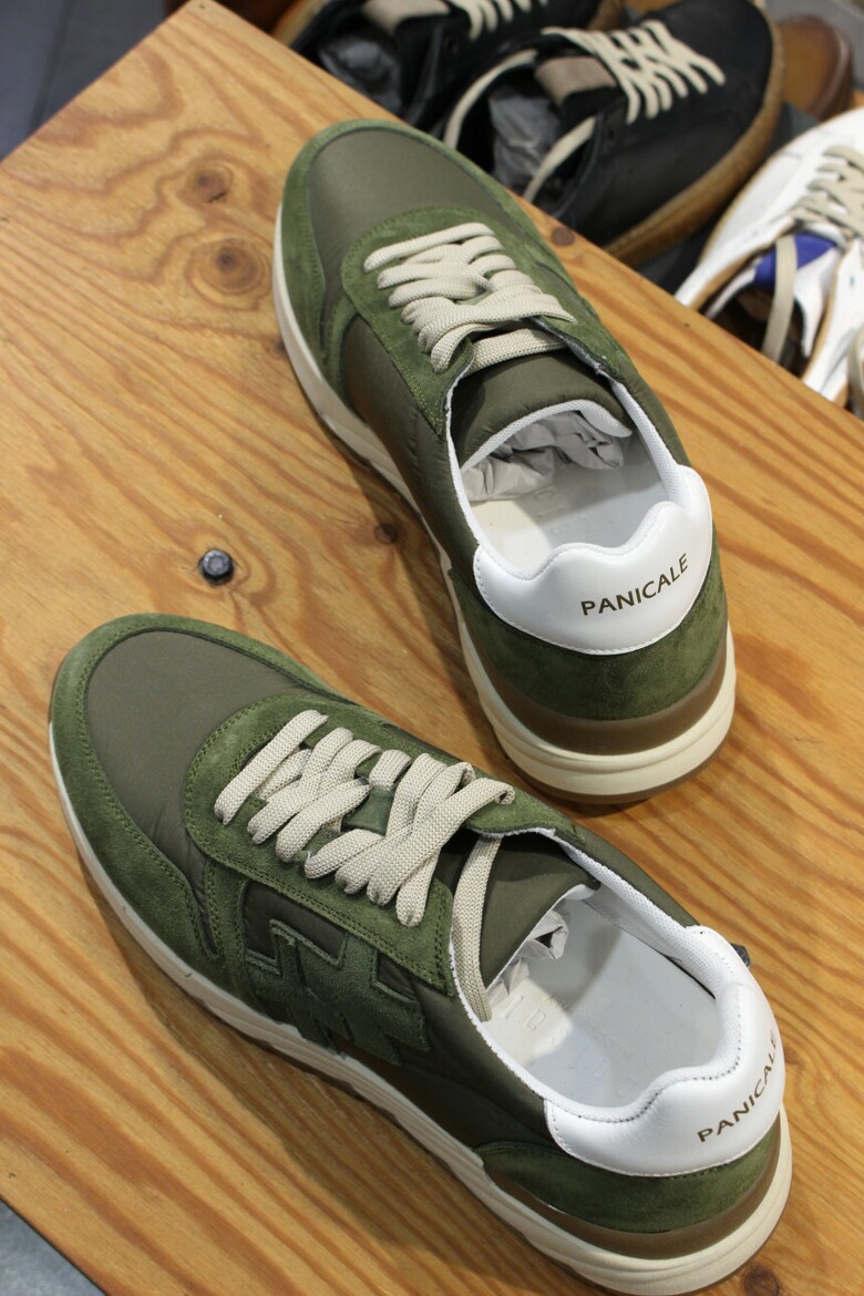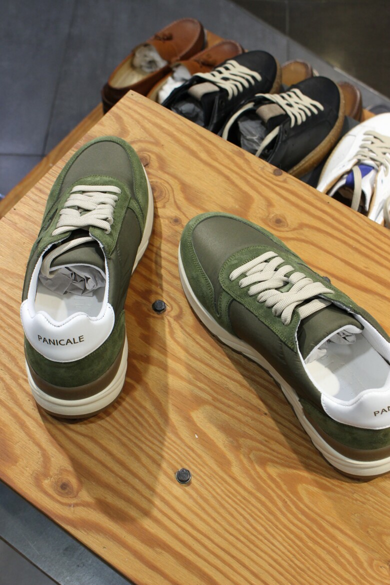 앞코와 뒷축에 사용된 스웨이드 디테일, 감각적인 컬러 블록, 힐탭의 PANICALE 로고, 견고한 고무 아웃솔이 조화를 이루어