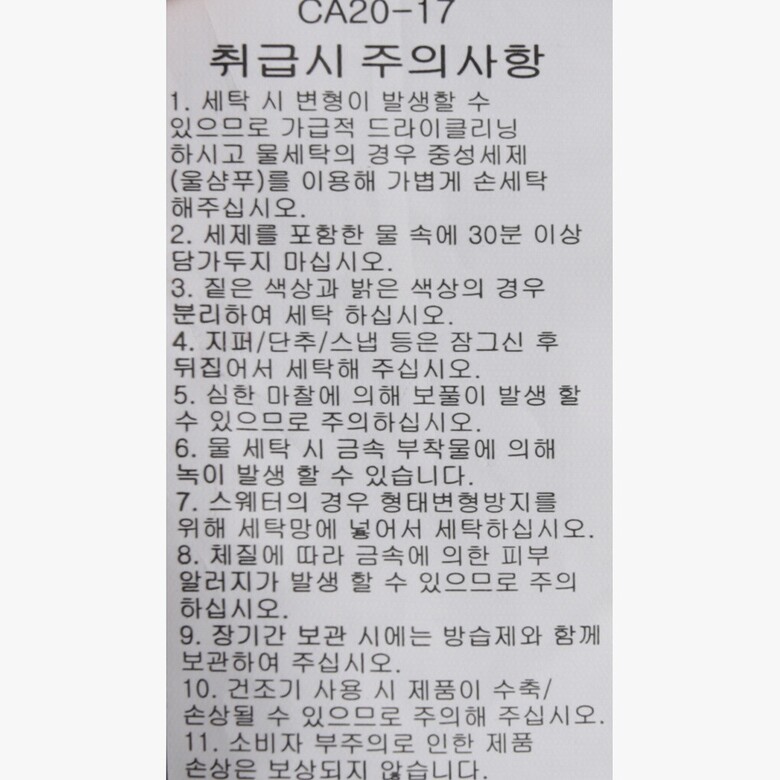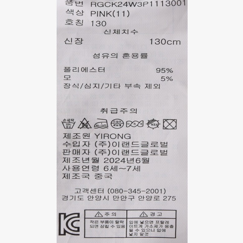 | 6. 세탁방법 및 취급시 주의사항 | 상품상세참조 |