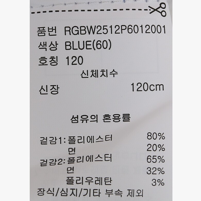 | 1. 제품 소재 (섬유의 조성 또는 혼용률을 백분율로 표시, 기능성인 경우 성적서 또는 허가서) | 상품상세참조 |