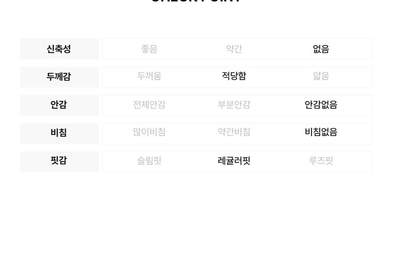 1. 제품 소재 (섬유의 조성 또는 혼용률을 백분율로 표시, 기능성인 경우 성적서 또는 허가서) | 상품상세참조 |