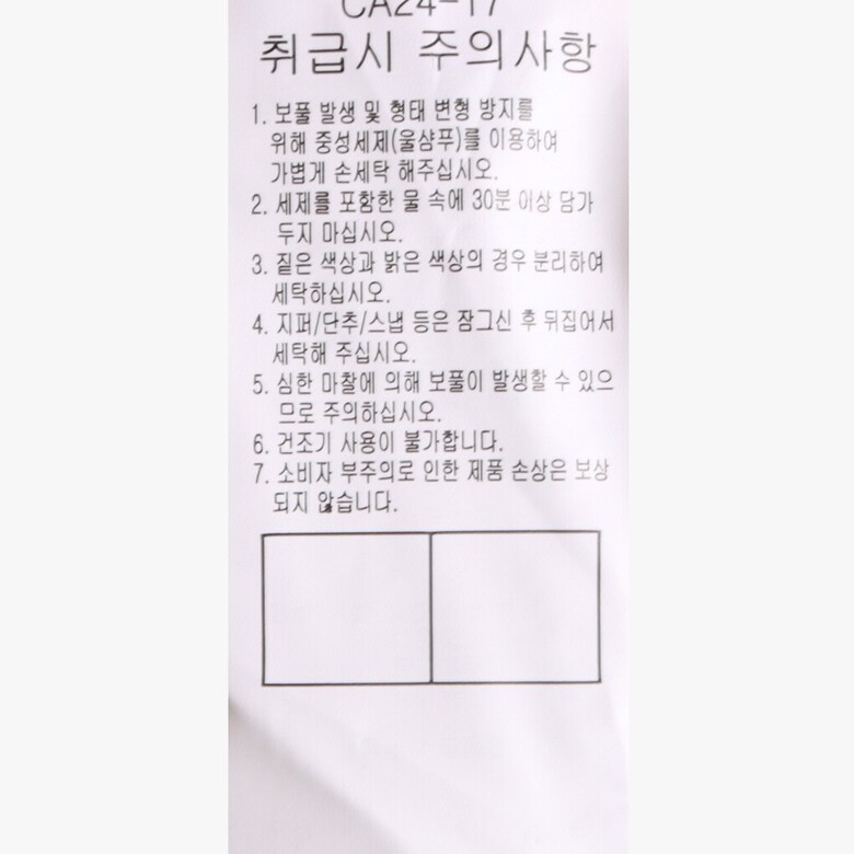 • 처음 배송된 상품상태와 다를 경우(세탁/착용 후 외출하신 경우) 반품이 불가합니다.