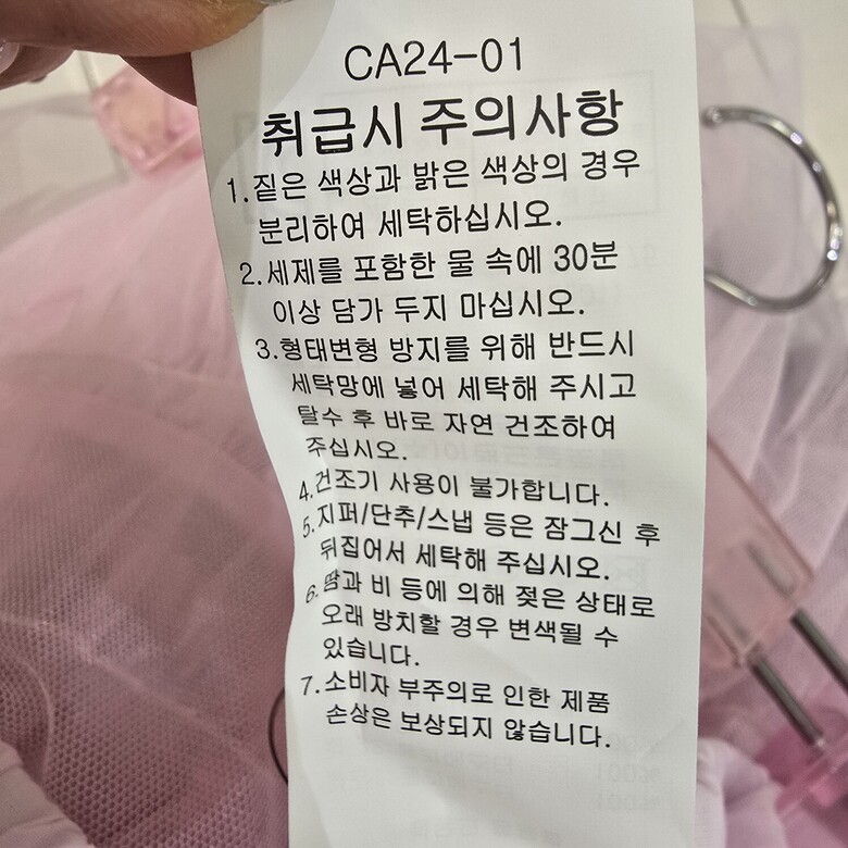 6. 세탁방법 및 취급시 주의사항 | 상품상세참조 |