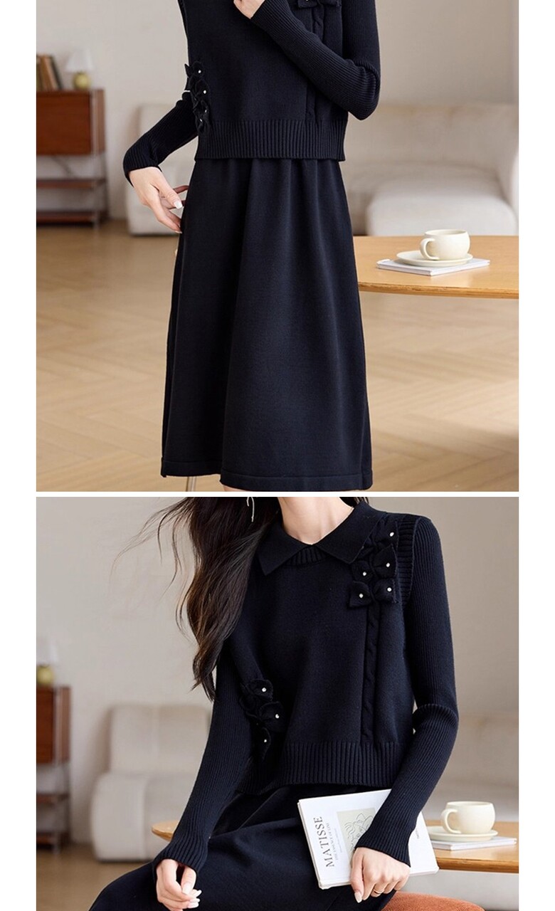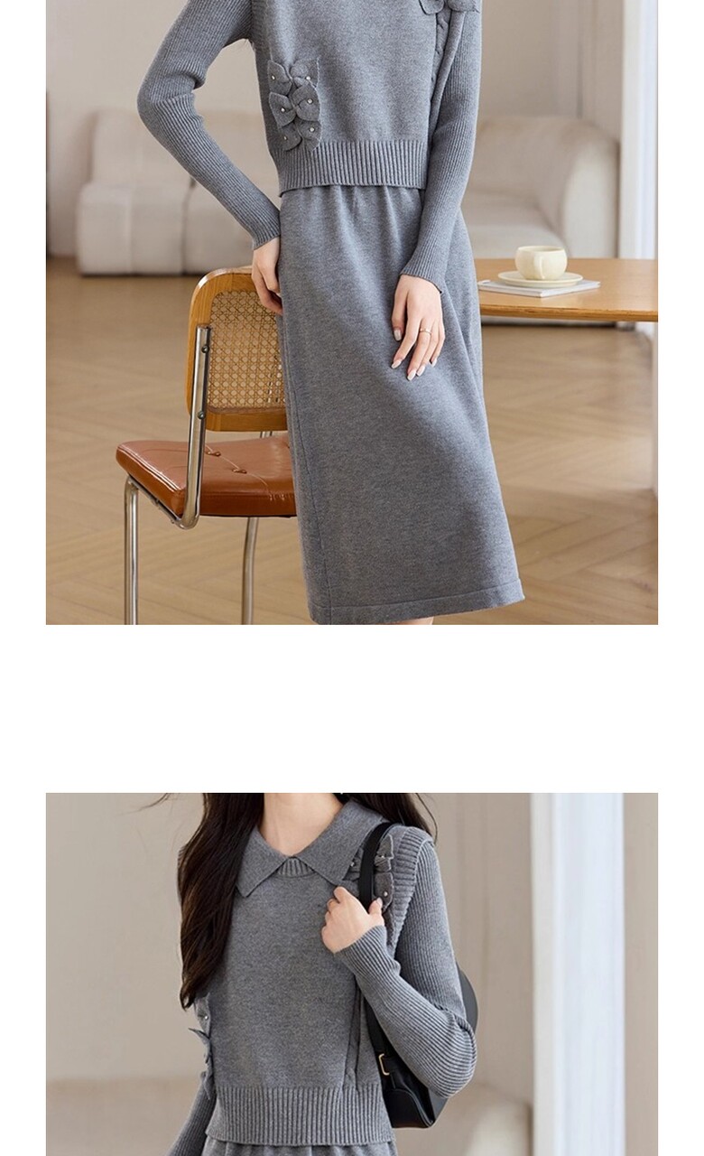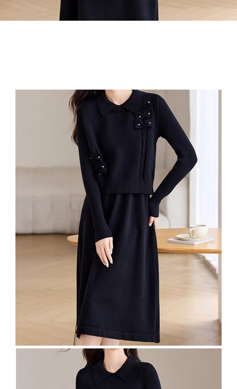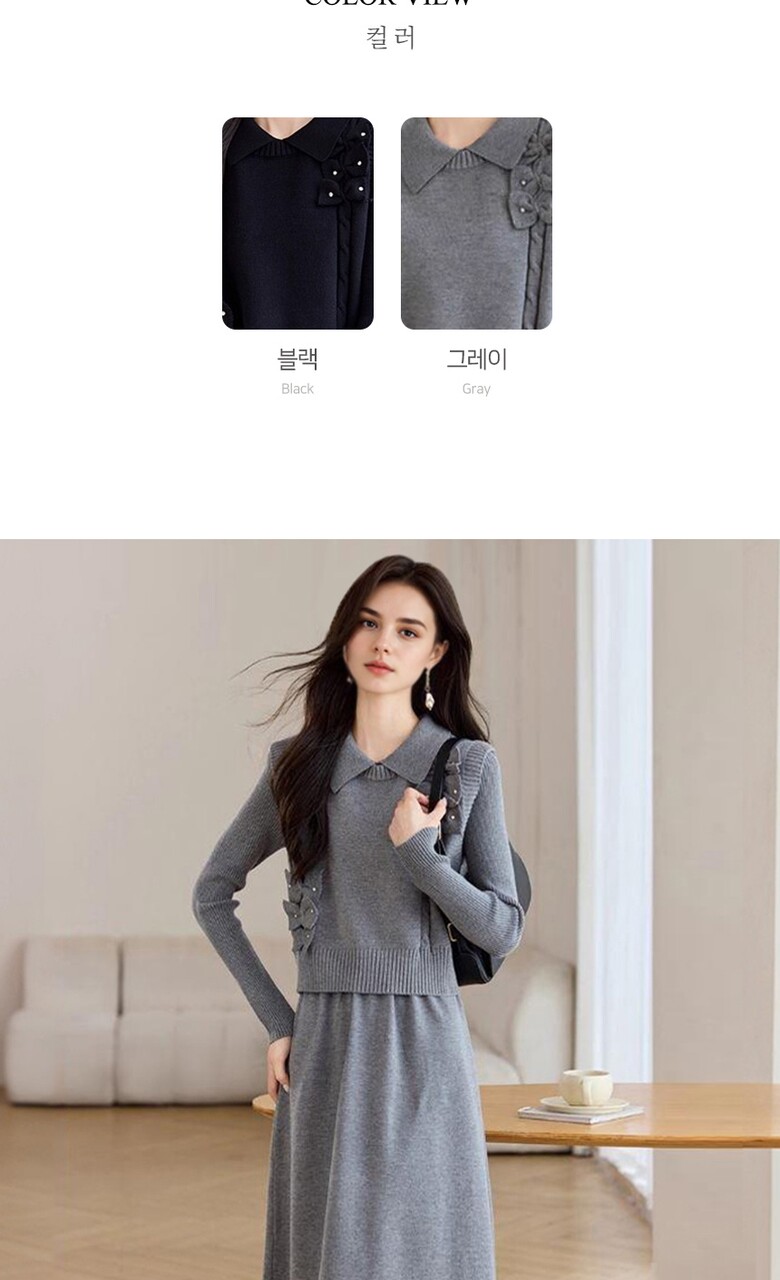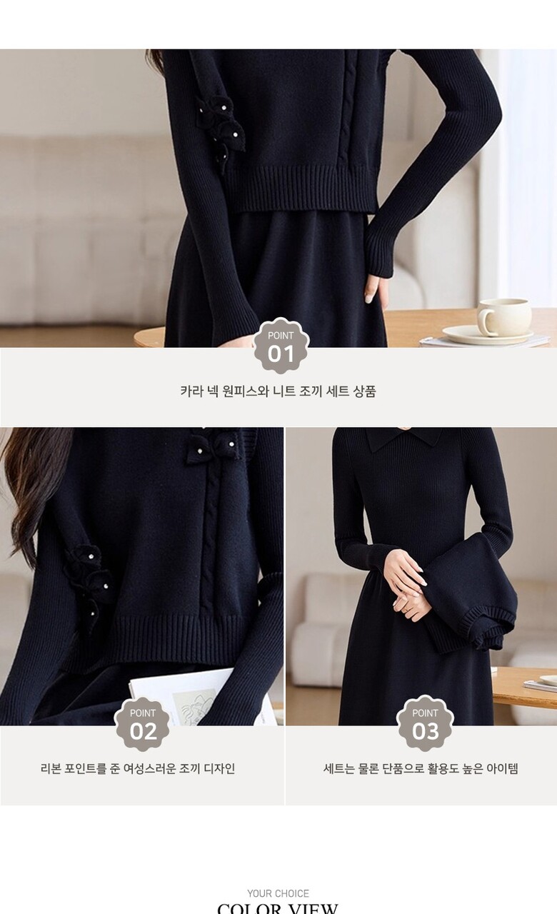 [비바로그] 핀더 니트 조끼 투피스 원피스 세트