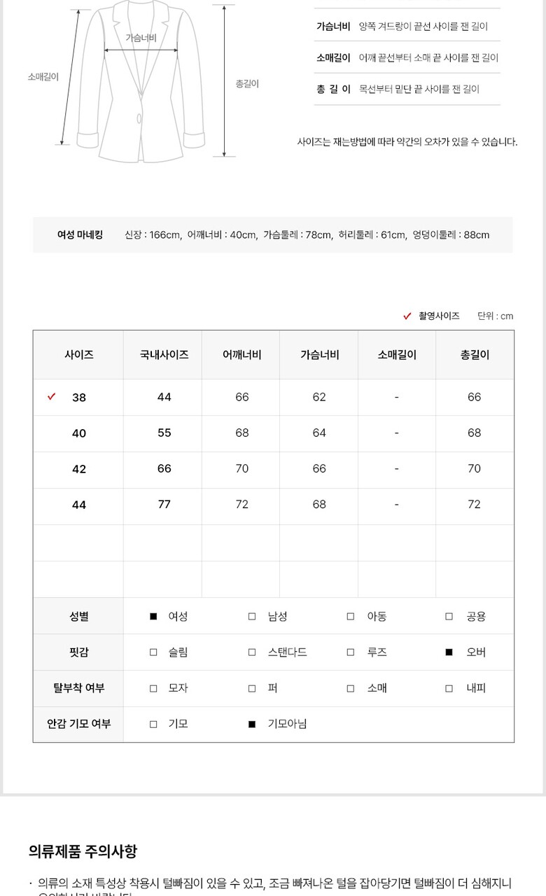 3. 치수 | 32,34,36,38,40,42,44,46 |