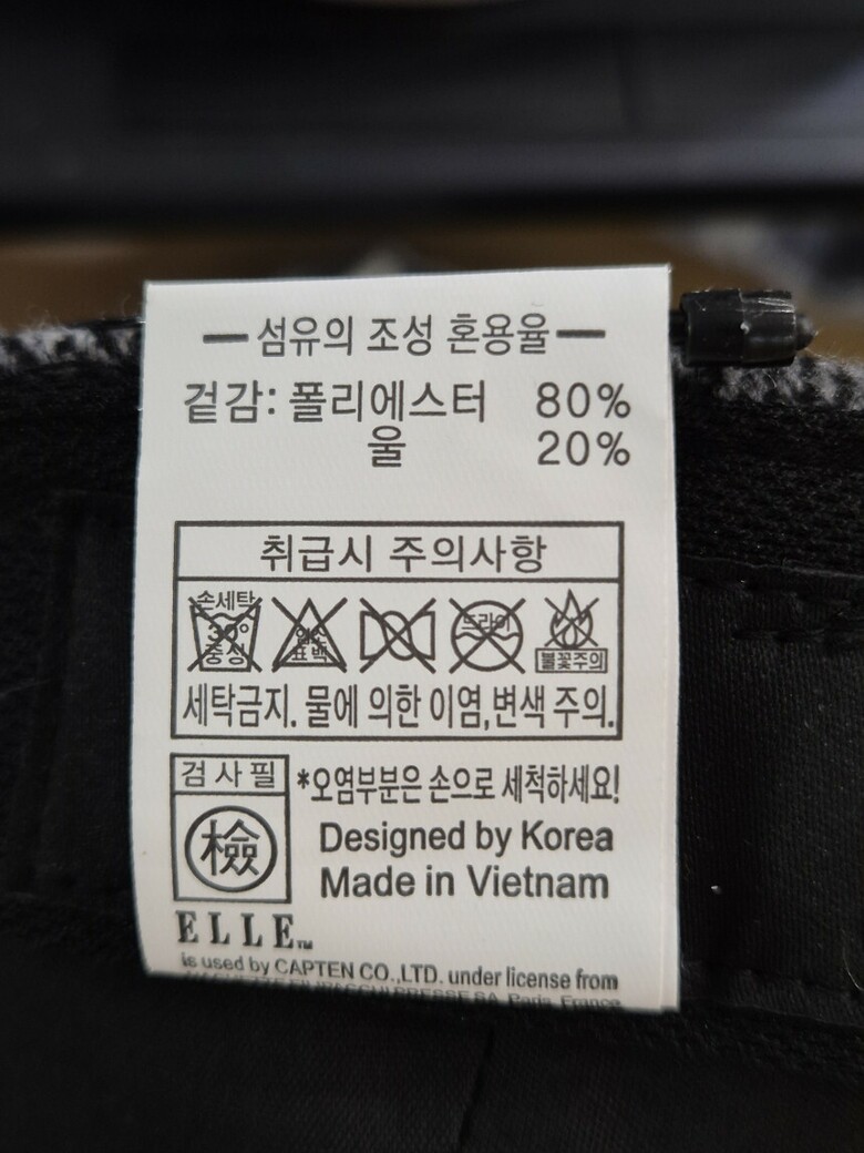 | 2. 소재 | 폴리에스테르 80%, 울 20% |