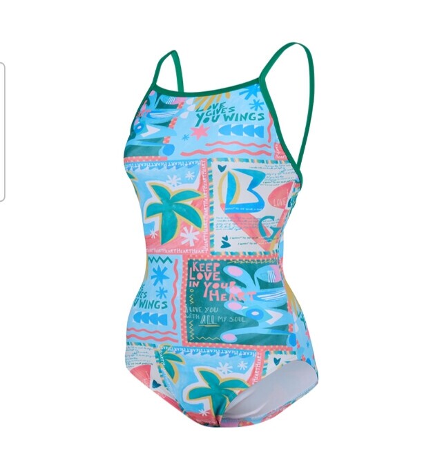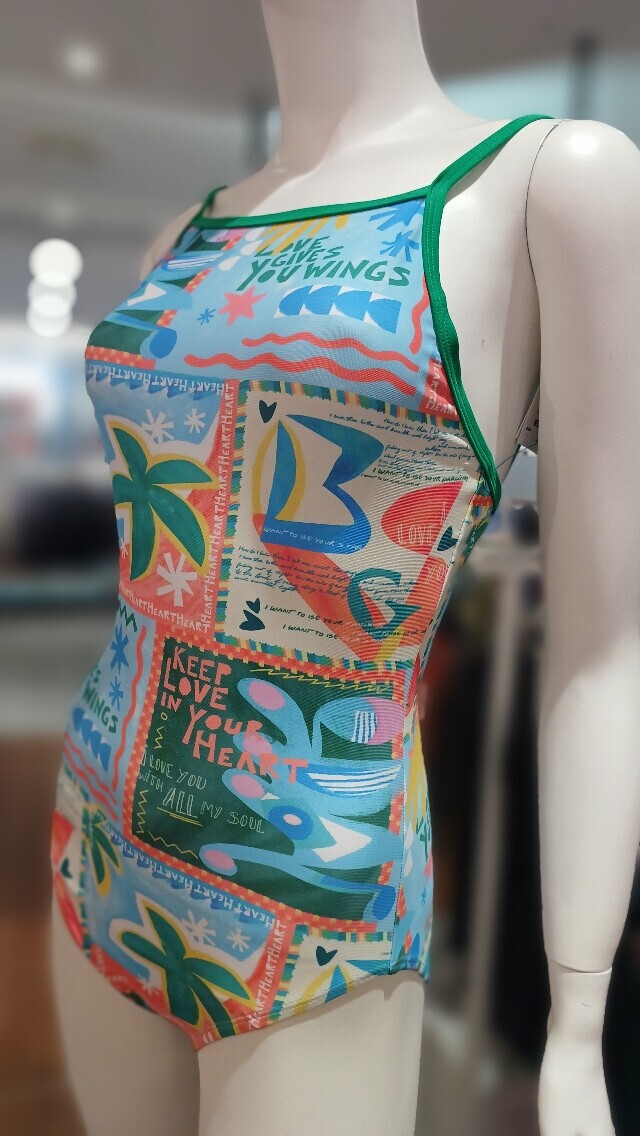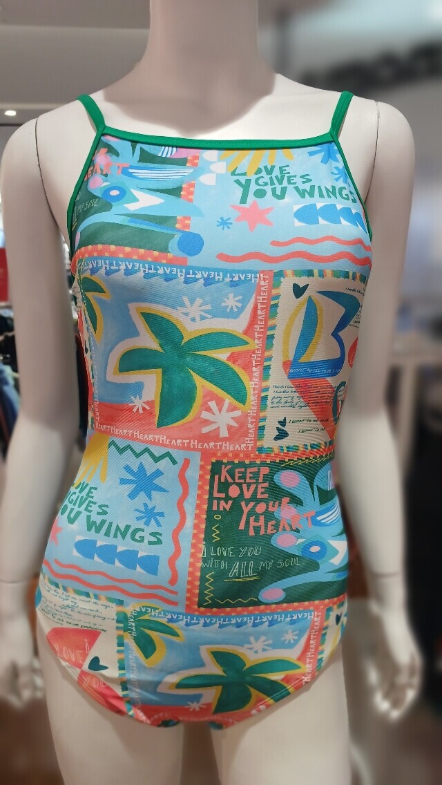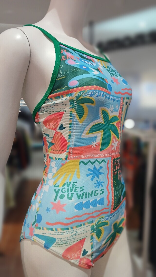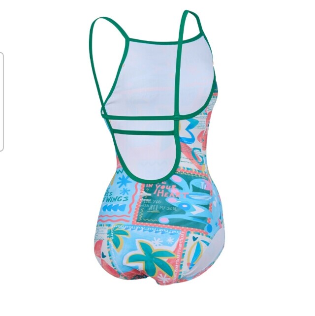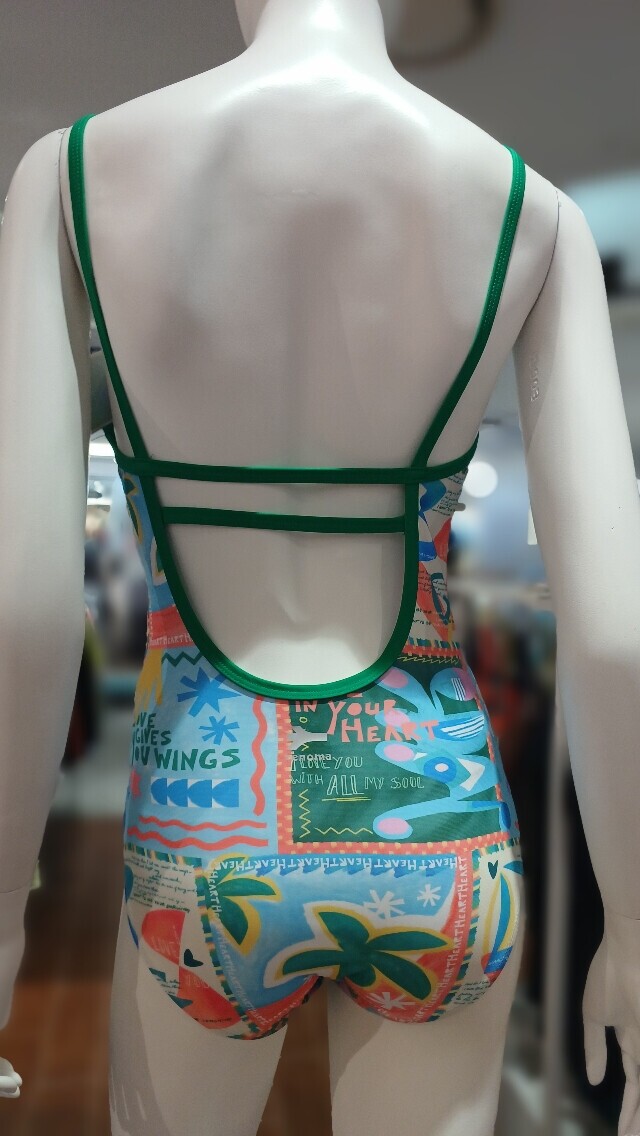 비치 프린팅이 돋보이는 U백 원피스 수영복입니다.