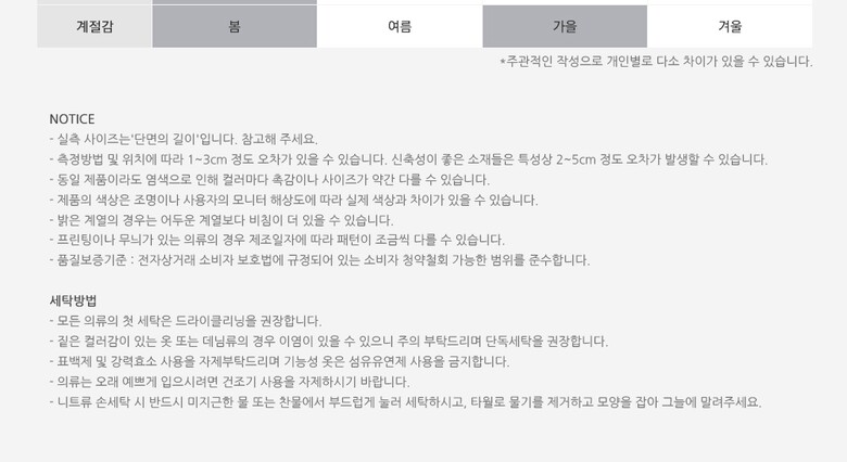 6. 세탁방법 및 취급시 주의사항 | 상세페이지 기재 |