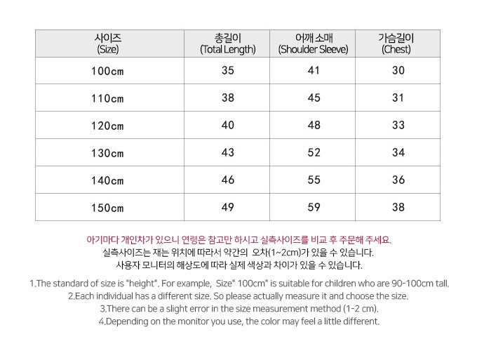 사이즈 : 100,110,120,130,140,150
