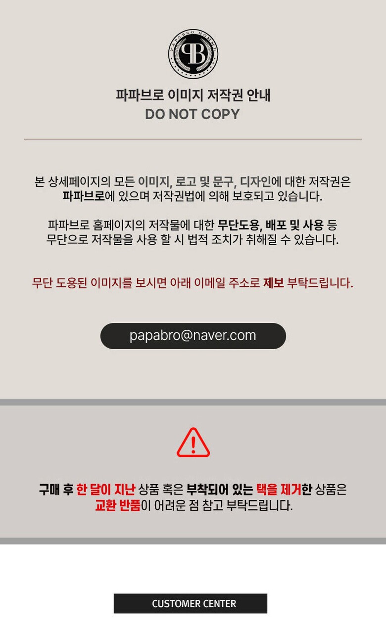• 처음 배송된 상품상태와 다를 경우(세탁/착용 후 외출하신 경우) 반품이 불가합니다.