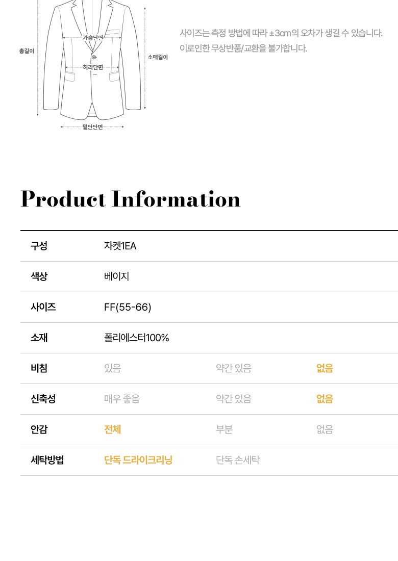• 처음 배송된 상품상태와 다를 경우(세탁/착용 후 외출하신 경우) 반품이 불가합니다.