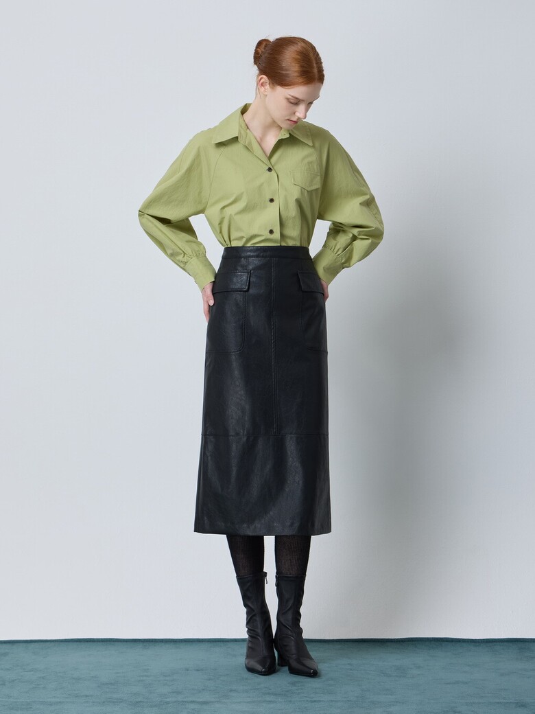 CC collect. 페이크 레더 H라인 스커트_C244MSD036