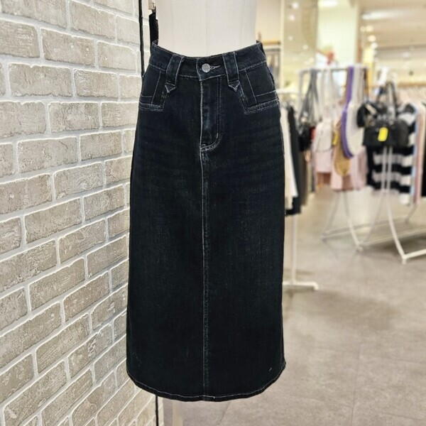 LC31EXDS515X_일자 뒷 트임 데님 스커트