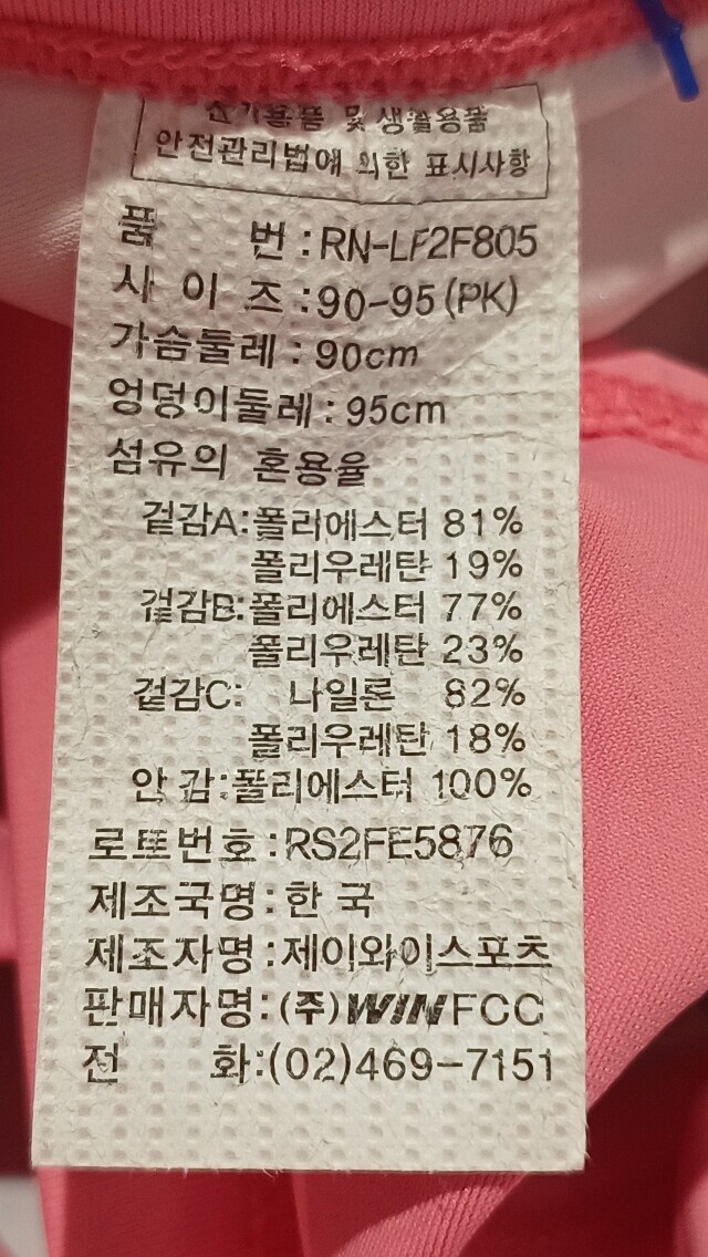 | 1. 제품 소재 (섬유의 조성 또는 혼용률을 백분율로 표시, 기능성인 경우 성적서 또는 허가서) | 상품상세참조 |