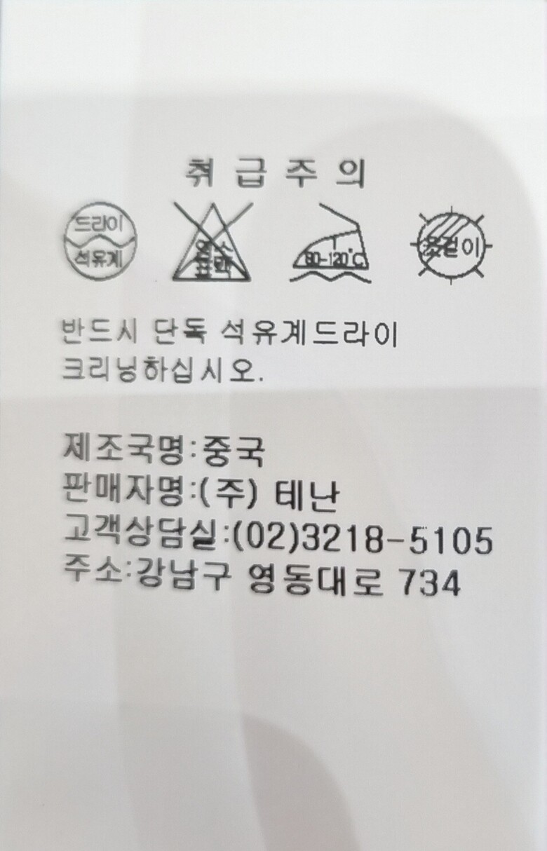 6. 세탁방법 및 취급시 주의사항 반드시 단독 석유계드라이 크리닝하십시오.