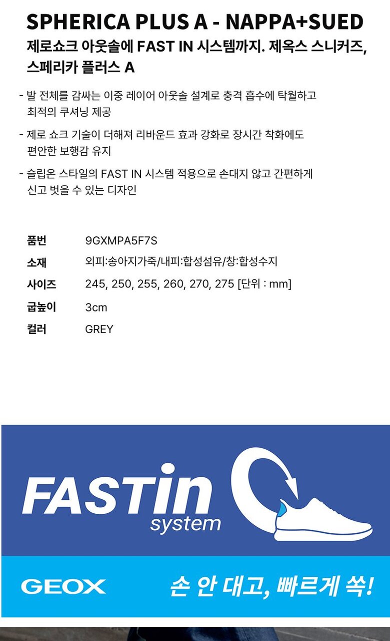 #(제옥스)9GXMPA5F7S경량쿠션미끄럼방지볼편안한남성스니커즈굽(3CM) #제옥스 #Geox