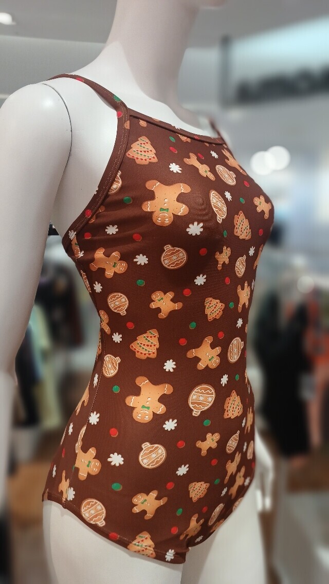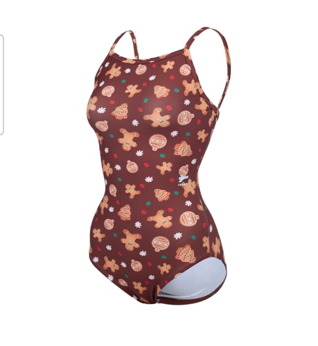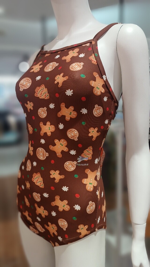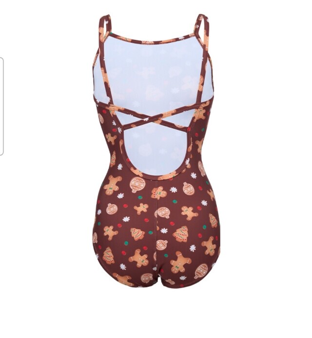 귀여운 쿠키 프린팅이 돋보이는 U백 미들컷 수영복입니다.