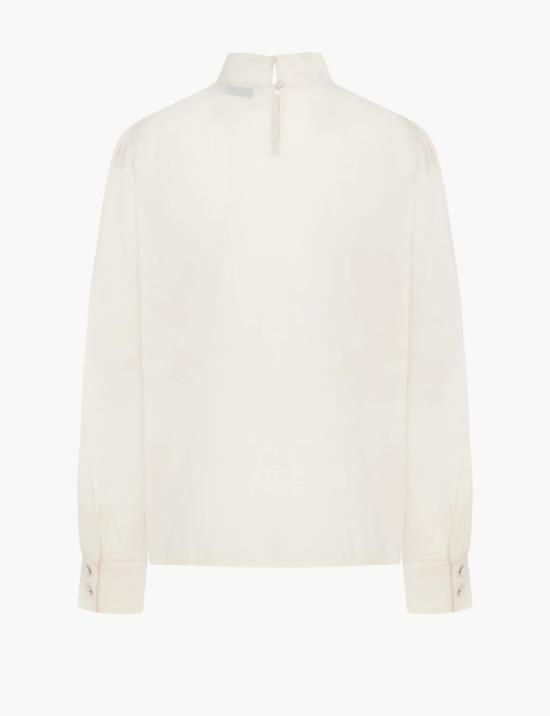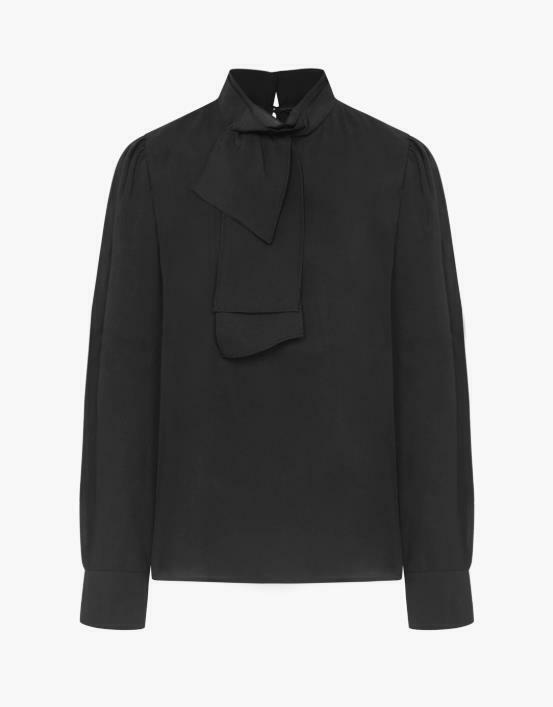 목선을 감싸는 하이넥 라인과 셔링이 들어간 타이 디테일로 우아한 무드를 연출해 줍니다.