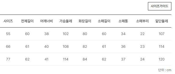 | 1. 제품 소재 (섬유의 조성 또는 혼용률을 백분율로 표시, 기능성인 경우 성적서 또는 허가서) | 상품상세참조 |
