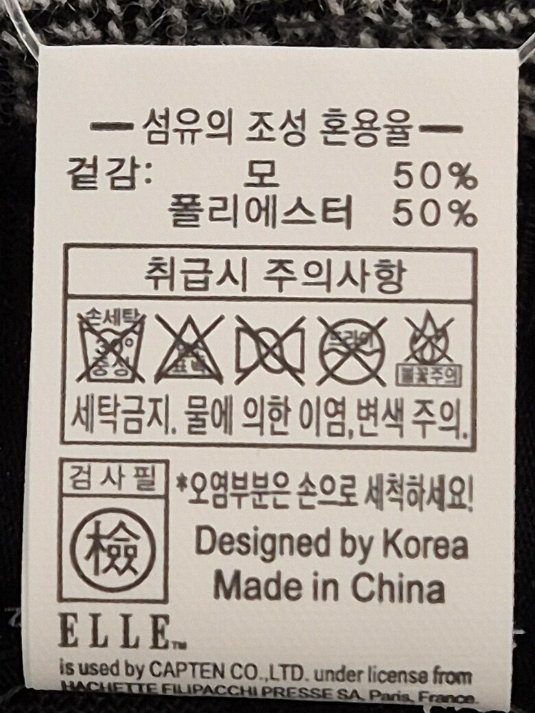 2. 소재 겉감:모 50%, 폴리에스테르 50%