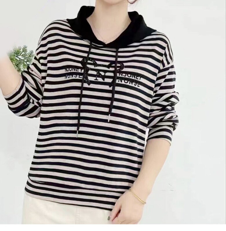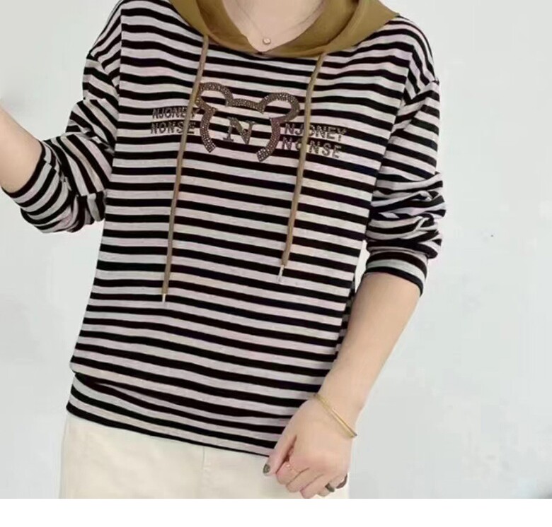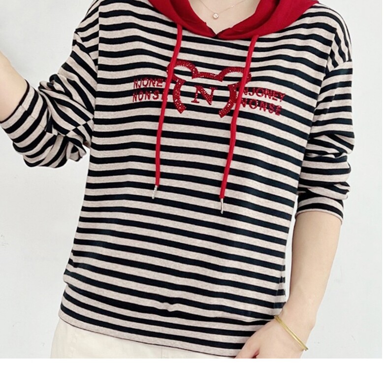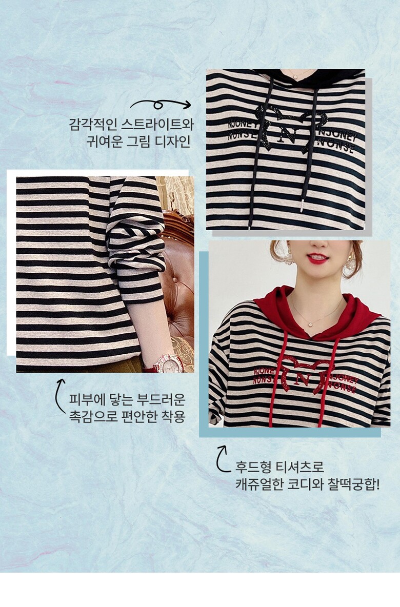 여성 줄가라 반짝이 후드 티셔츠 스트라이프 3color 데일리 기본티 베이직 긴팔