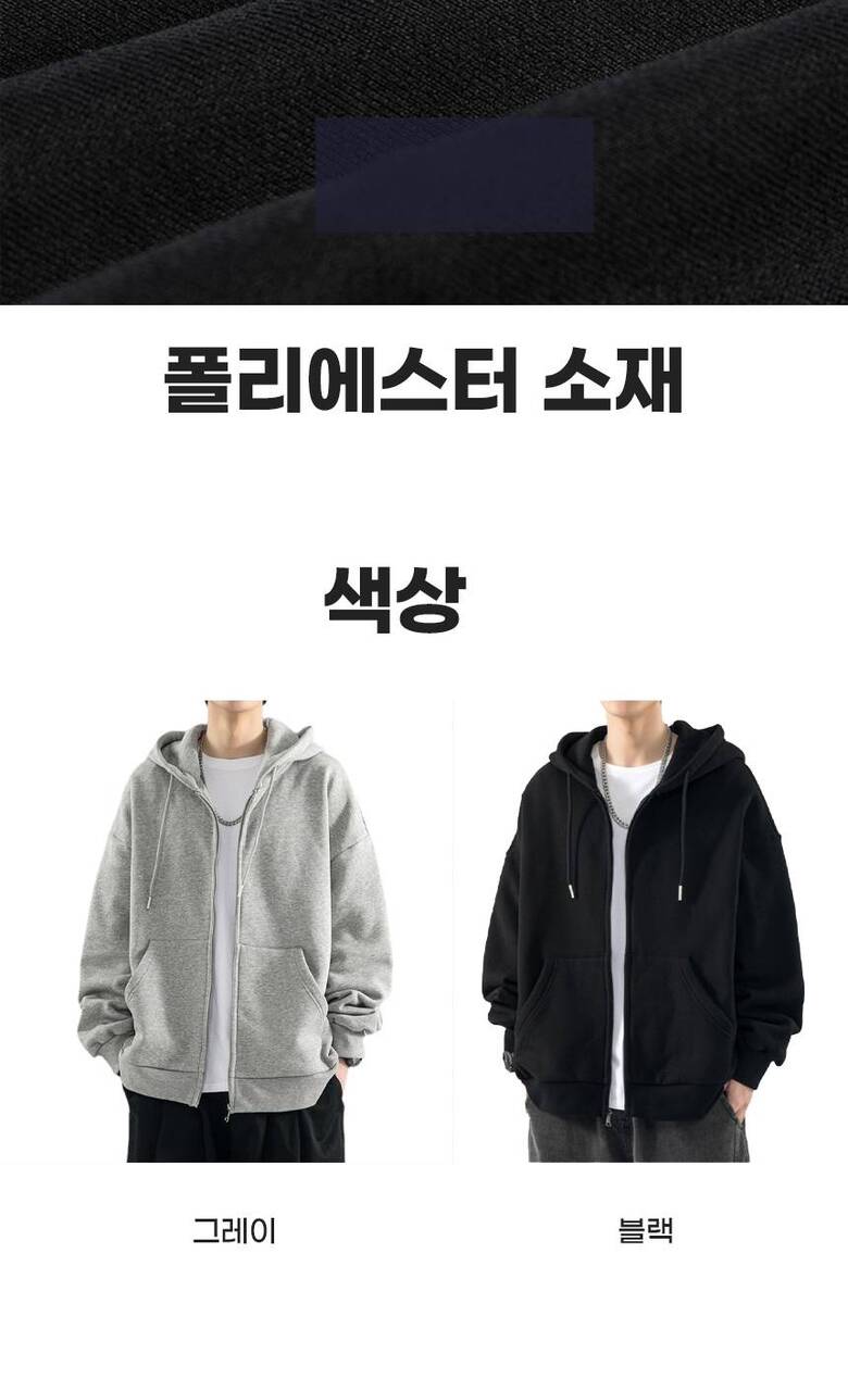 빅사이즈 남녀공용 후드집업 티셔츠 자켓 봄 가을 무지 간절기 커플 후드티