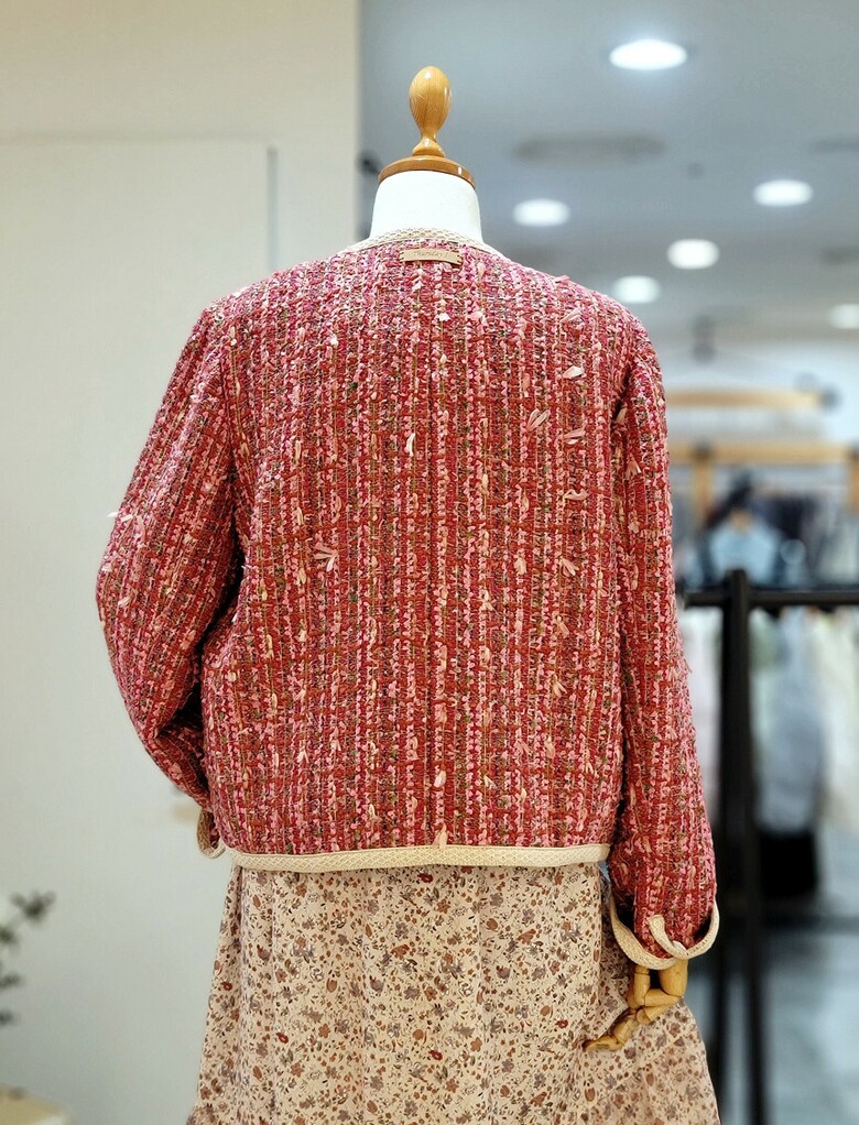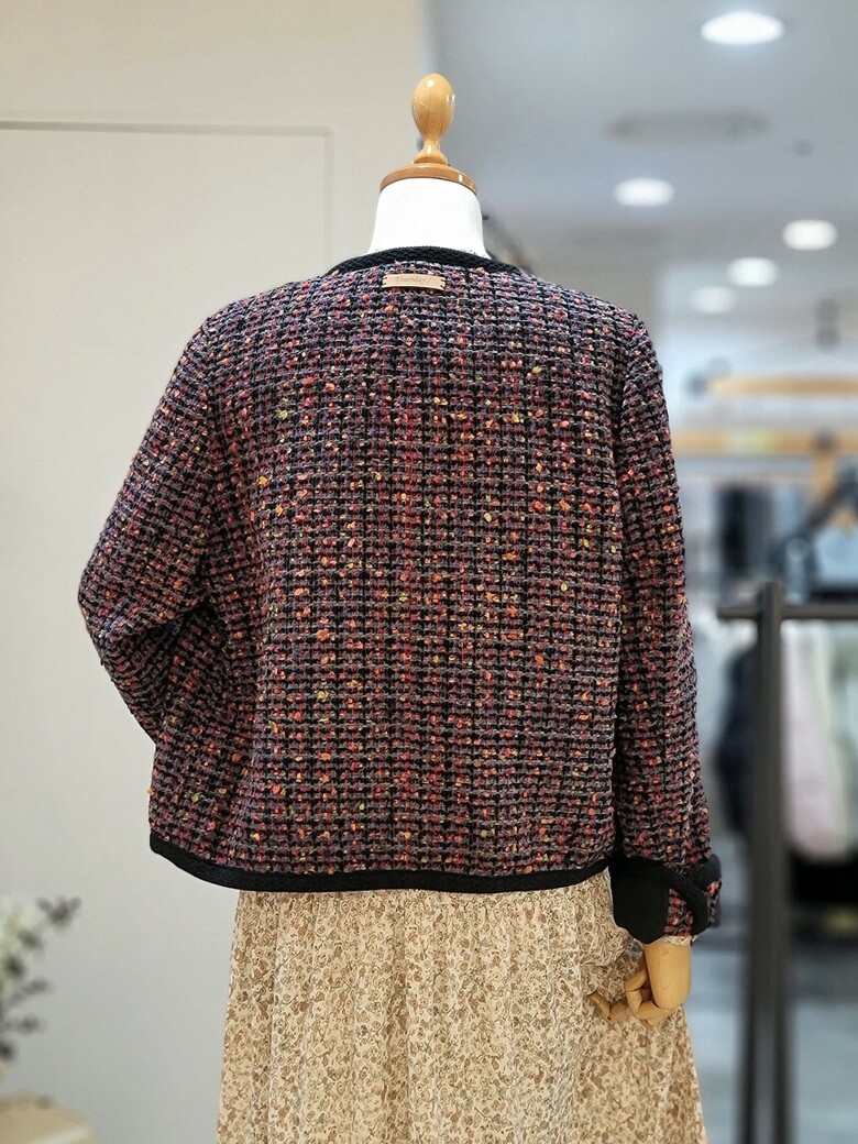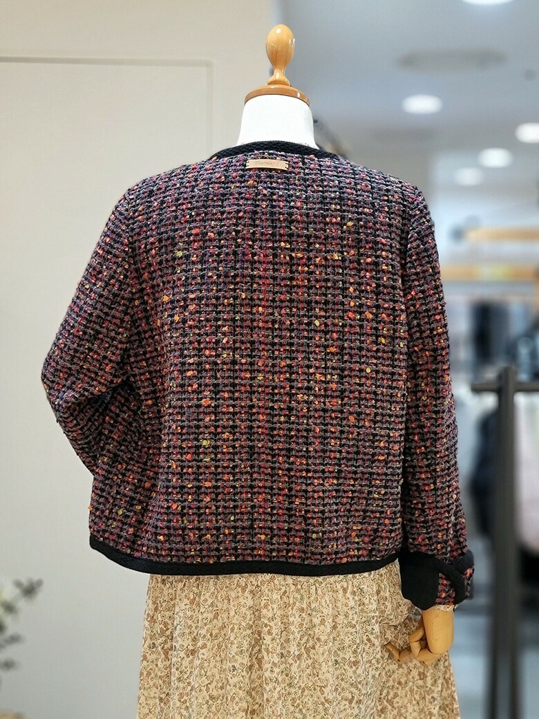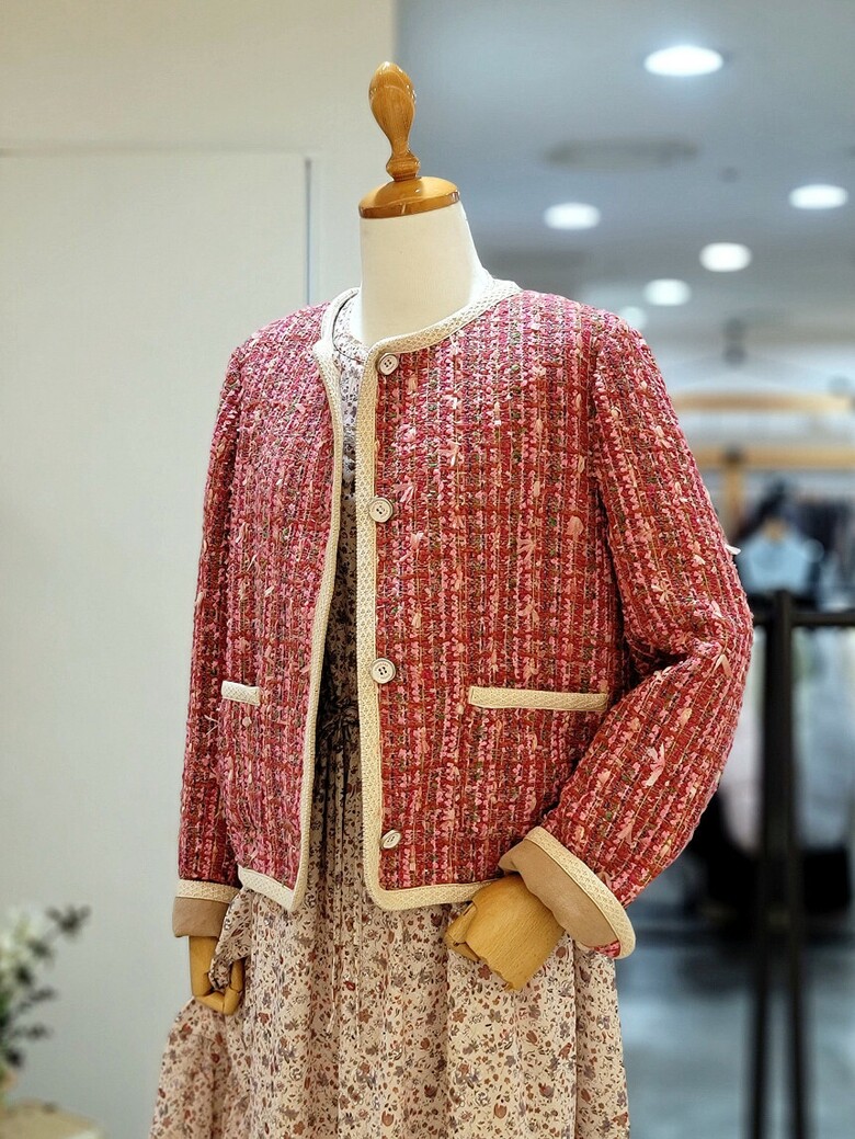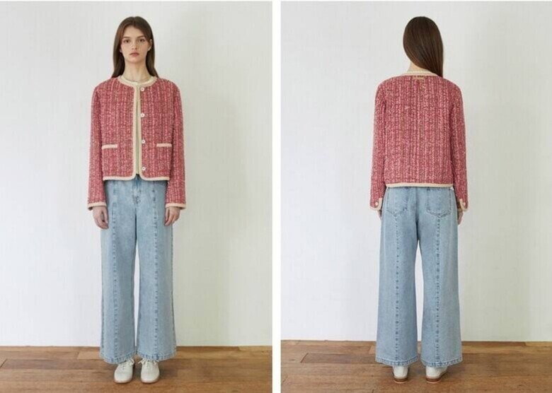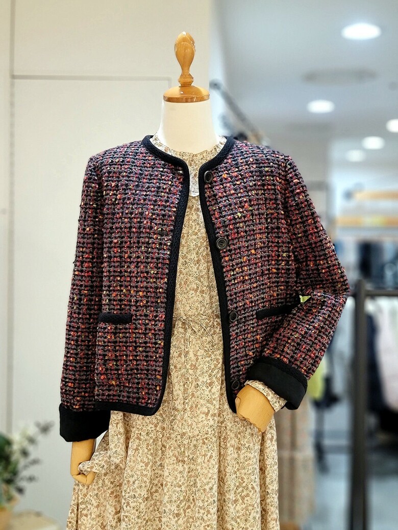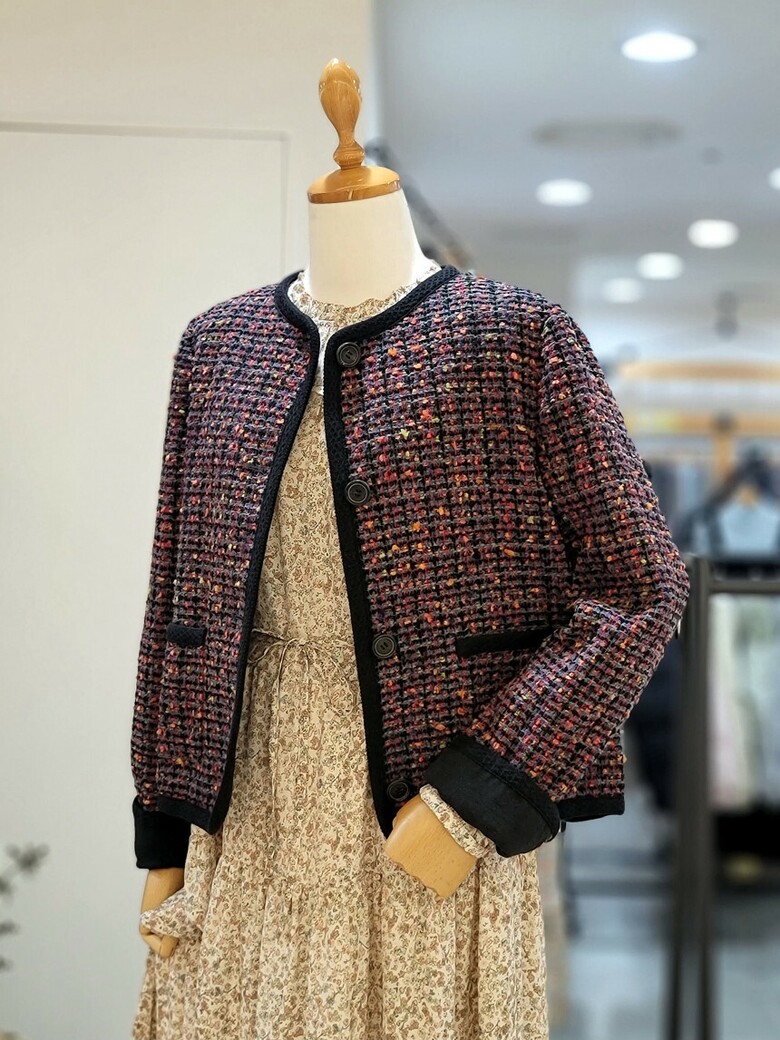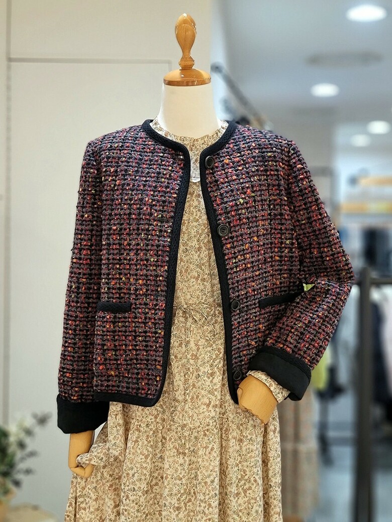 트위드 소재에 바인딩 테이프로 포인트를 준 자켓입니다.