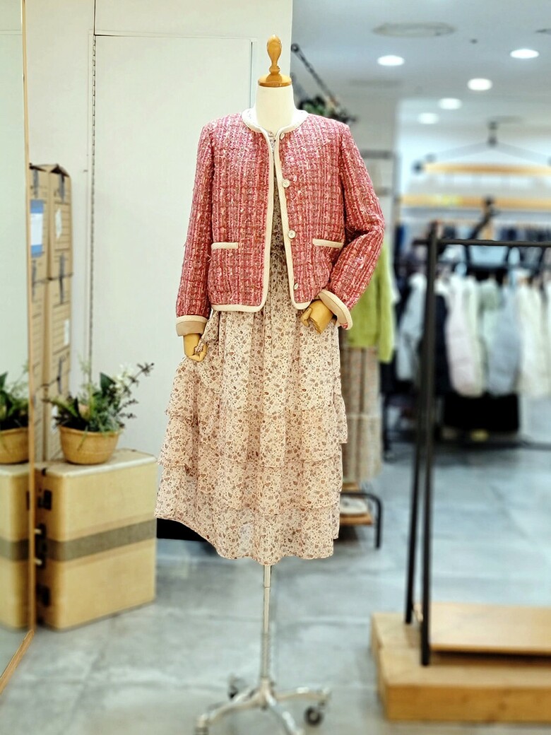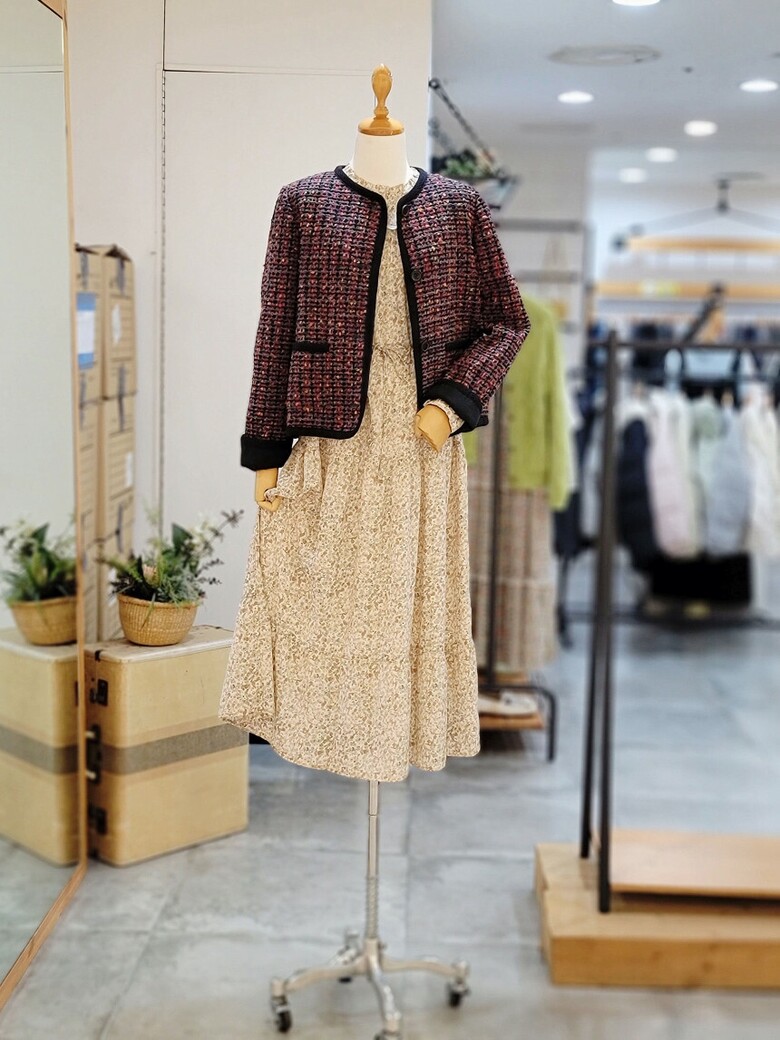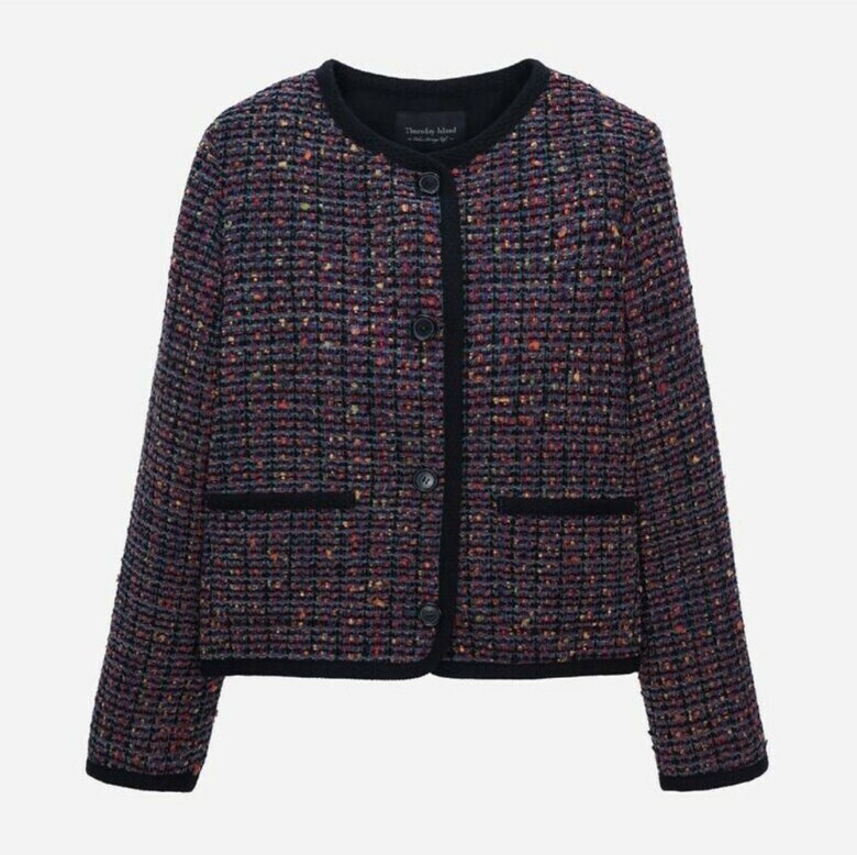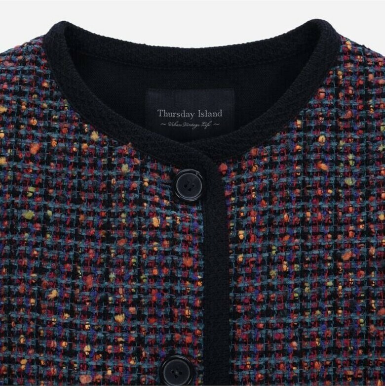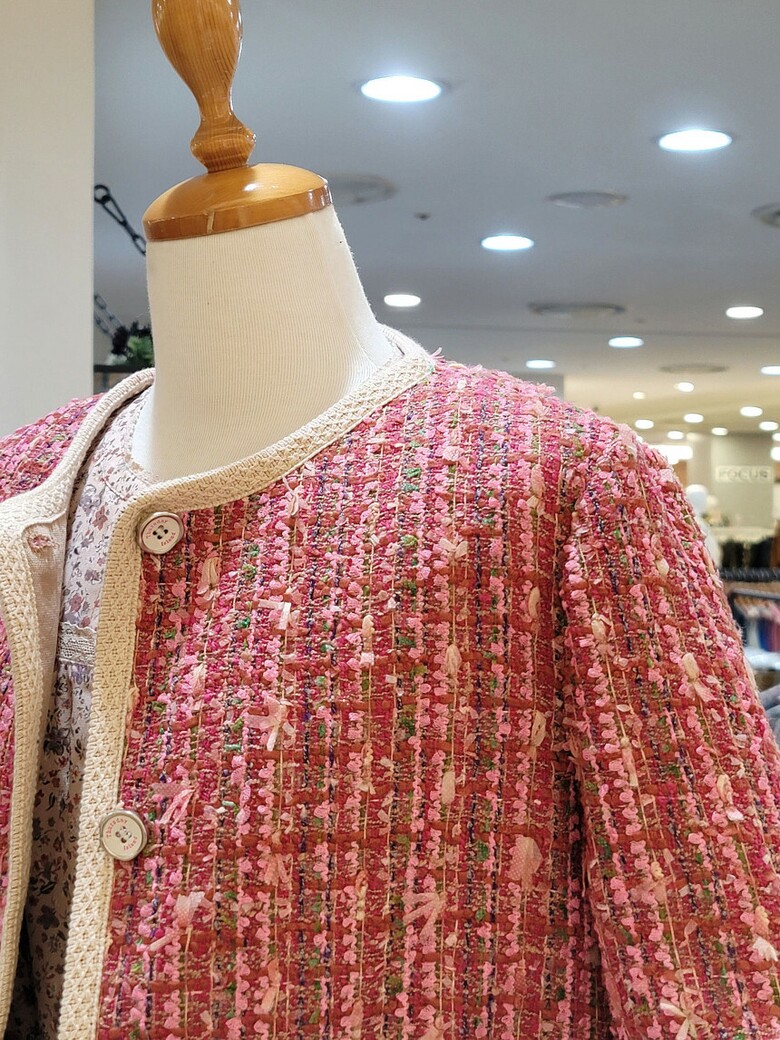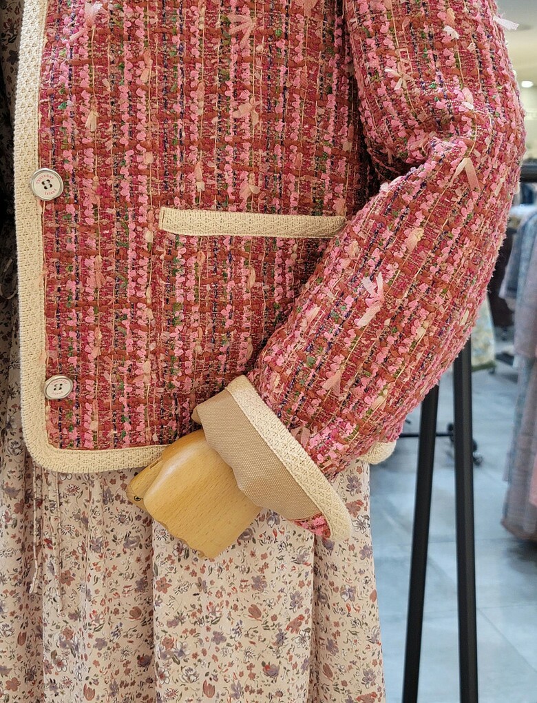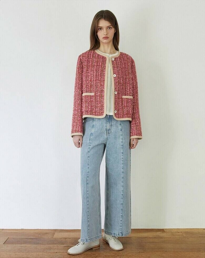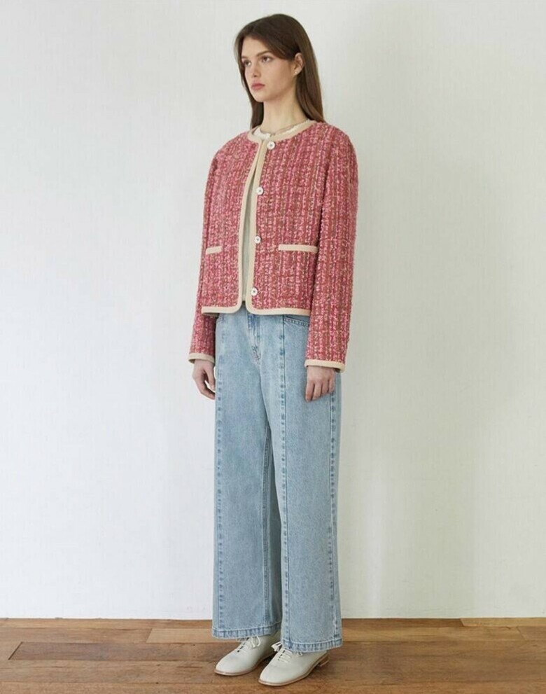트위드 소재에 바인딩 테이프로 포인트를 준 자켓입니다.