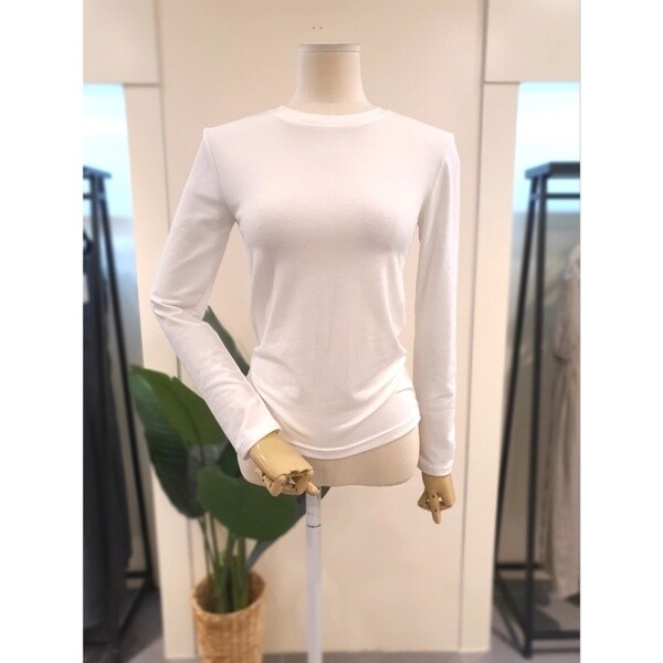 KKTSP904IV_스판 라운드넥 긴팔 티셔츠 아이보리
