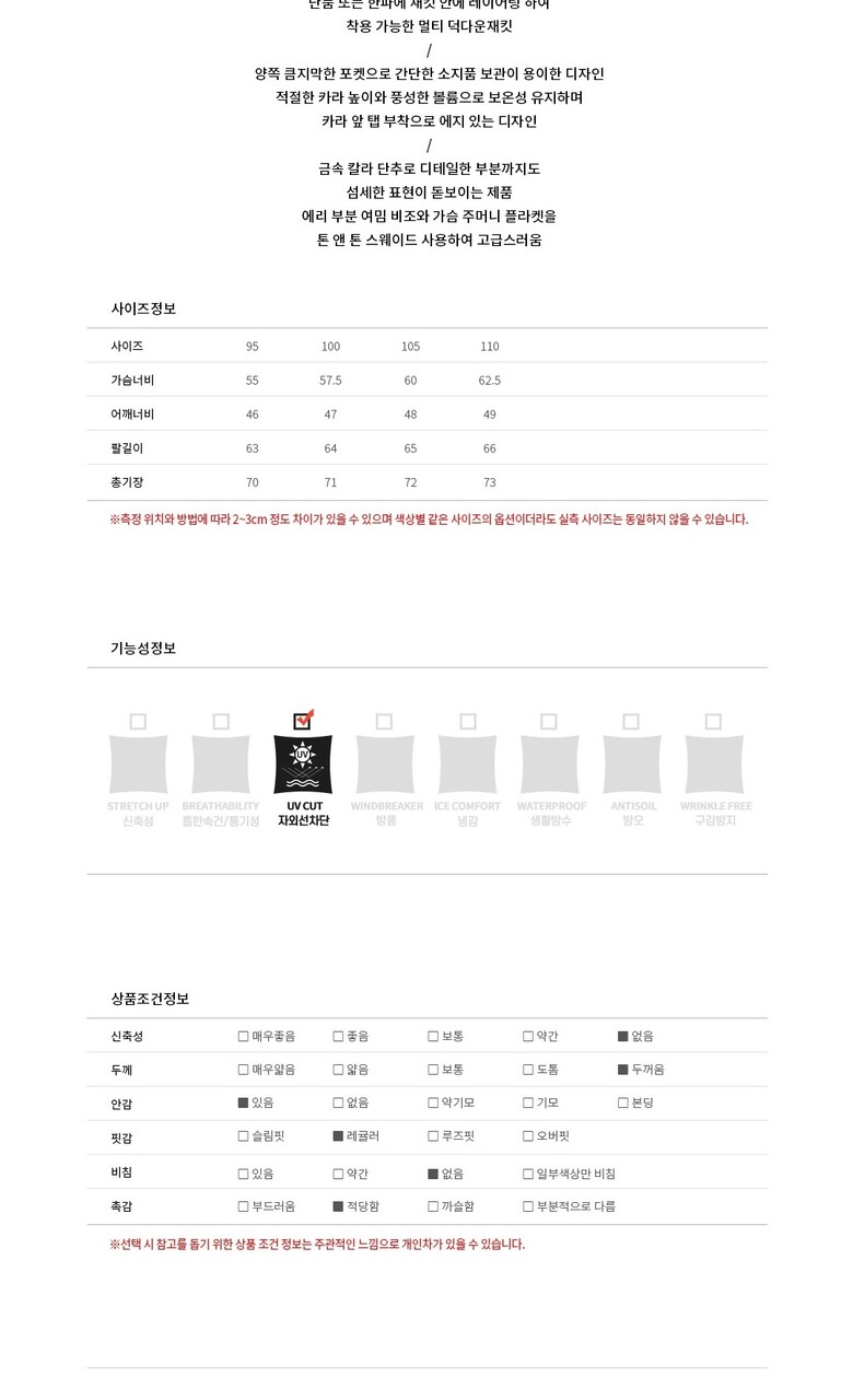 1. 제품 소재 (섬유의 조성 또는 혼용률을 백분율로 표시, 기능성인 경우 성적서 또는 허가서) | 상세이미지 참조 |