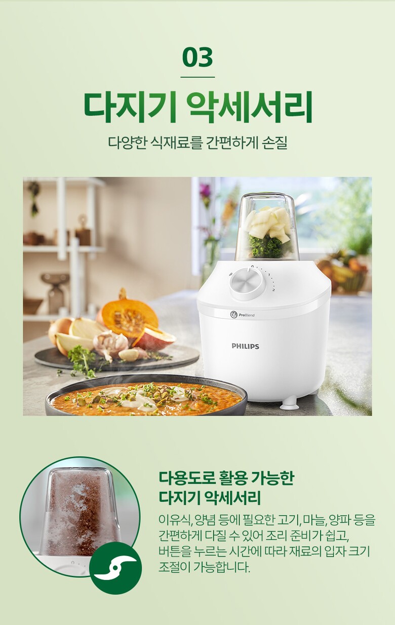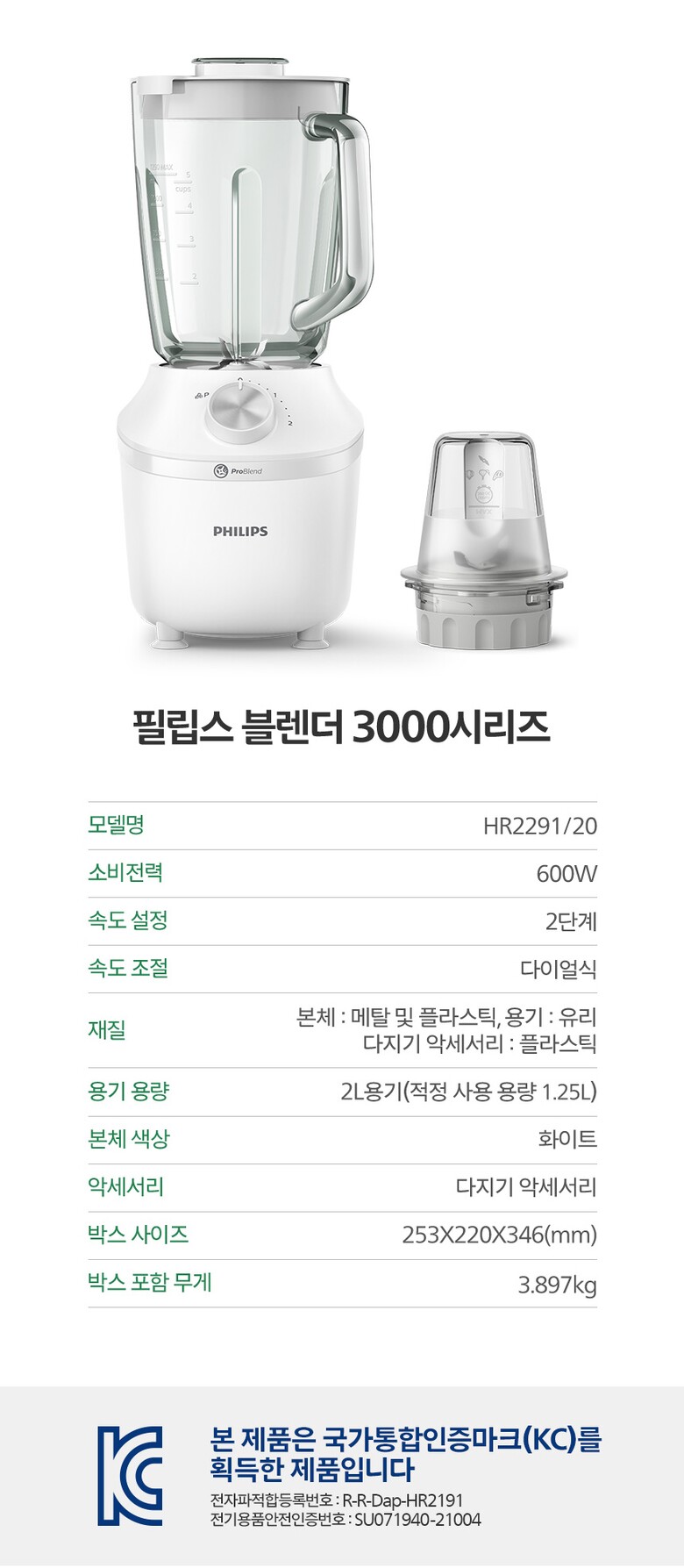 필립스 3000 시리즈 블렌더/믹서기 HR2291/20 화이트 다지기 구성