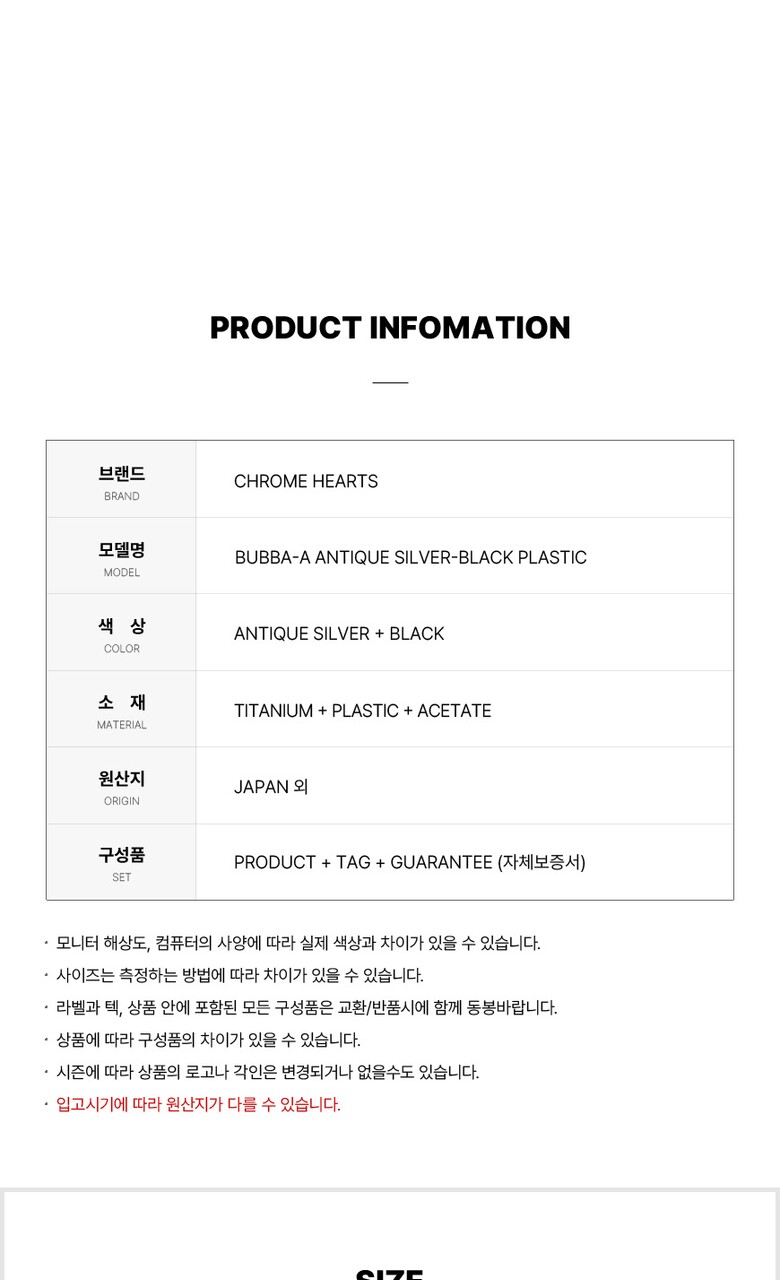 [크롬하츠] BUBBA-A Antique Silver-Black Plastic FW25 남성 부바 아시안핏 안경