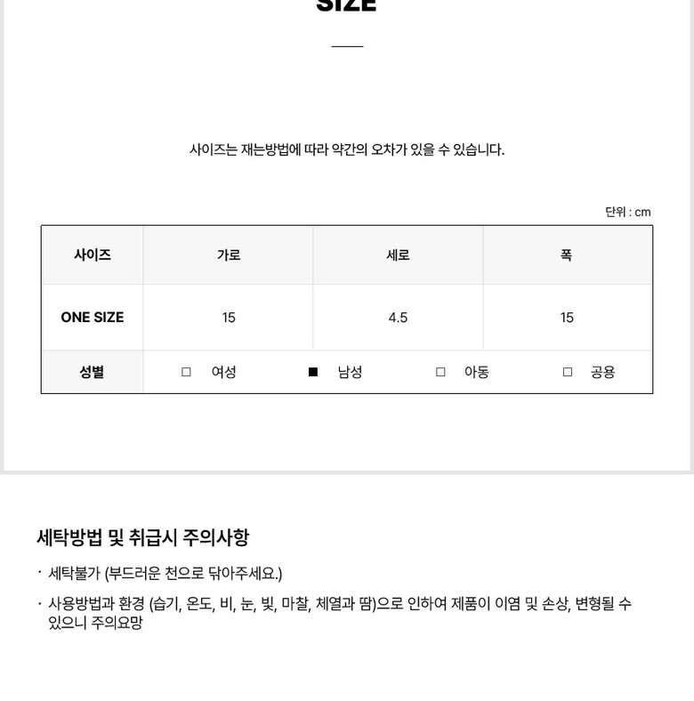 3. 치수 | 가로 15cm X 세로 4.5cm X 폭 15cm |