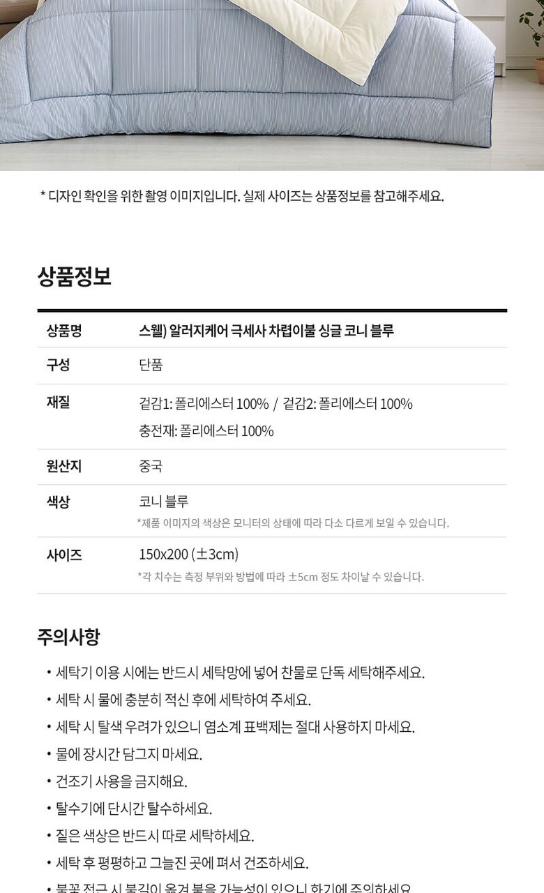 모던하우스 스웰 알러지케어 극세사 차렵이불 싱글 코니 블루 CV0225215