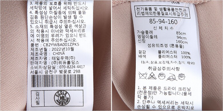 | 6. 세탁방법 및 취급시 주의사항 | 상세페이지 참조 |