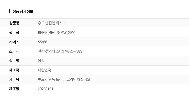 2. 색상 색상:BEIGE(BEG)/GRAY(GRY)