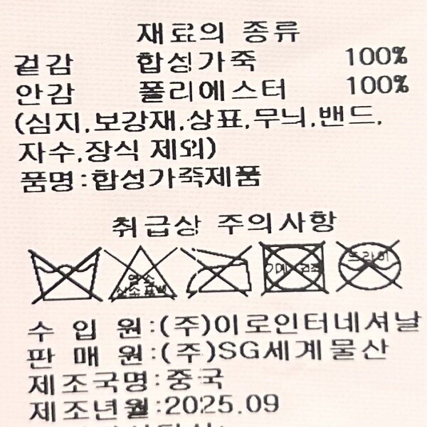 제품소재 : 겉감-합성가죽100%안감-폴리에스터100%