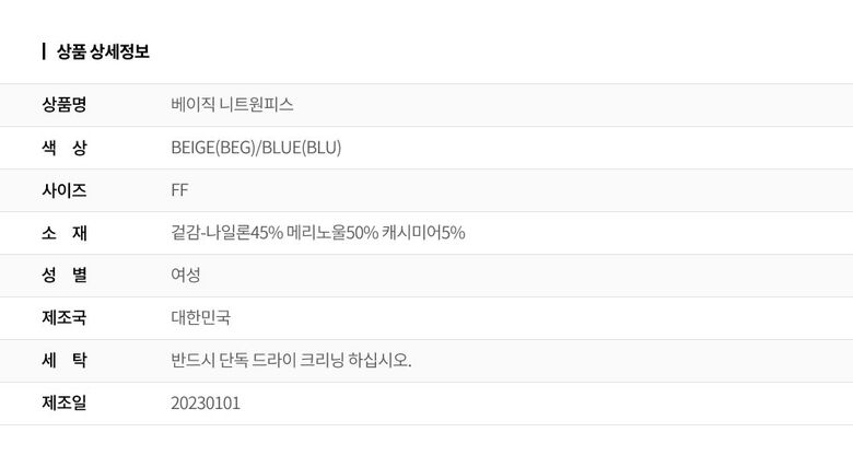 2. 색상 색상:BEIGE(BEG)/BLUE(BLU)