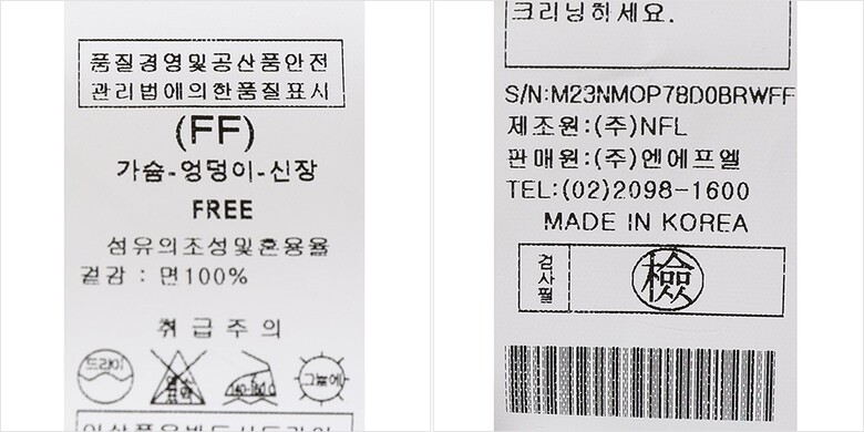 | 1. 제품 소재 (운동화인 경우에는 겉감, 안감을 구분하여 표시) | 겉감-면100% |
