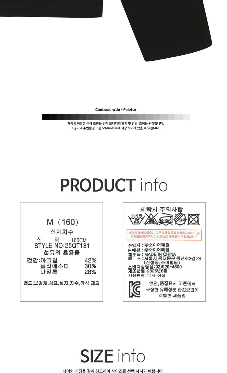 1. 제품 소재 (섬유의 조성 또는 혼용률을 백분율로 표시, 기능성인 경우 성적서 또는 허가서) | 상품상세참조 |