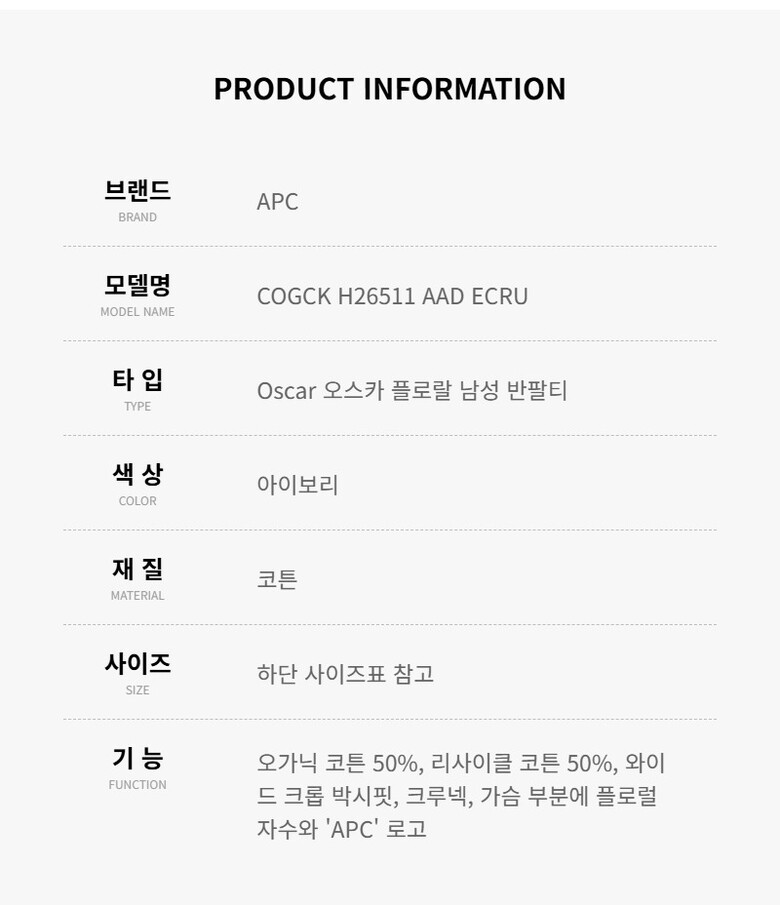 아페쎄 COGCK H26511 AAD ECRU Oscar 오스카 플로랄 남성 반팔티