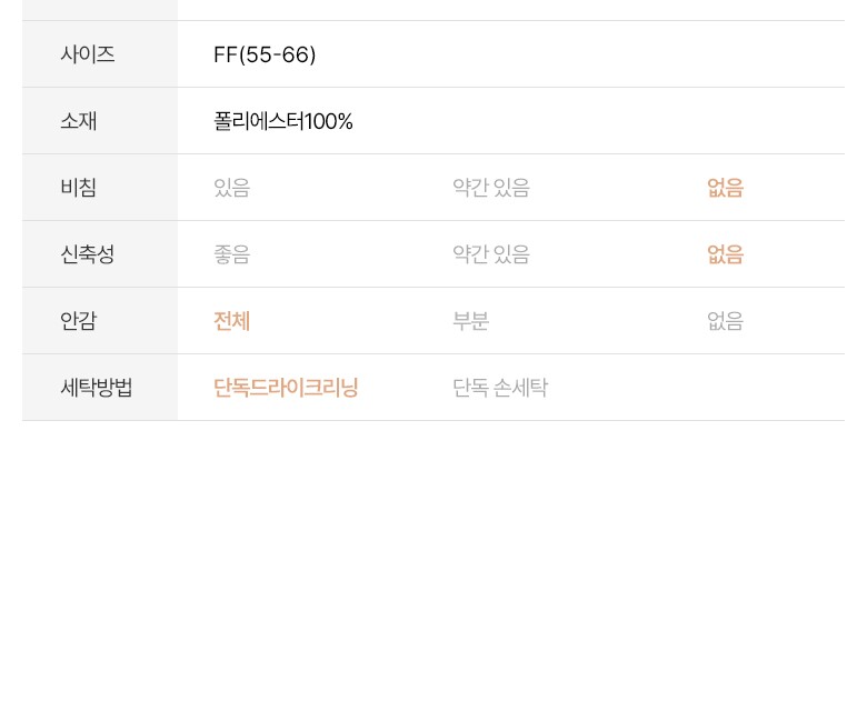 • 처음 배송된 상품상태와 다를 경우(세탁/착용 후 외출하신 경우) 반품이 불가합니다.