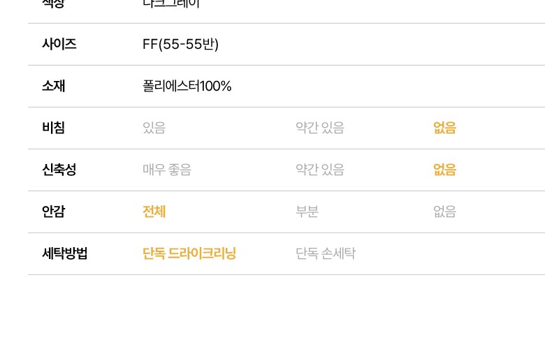 1. 제품 소재 (섬유의 조성 또는 혼용률을 백분율로 표시, 기능성인 경우 성적서 또는 허가서) | 폴리에스터100% |