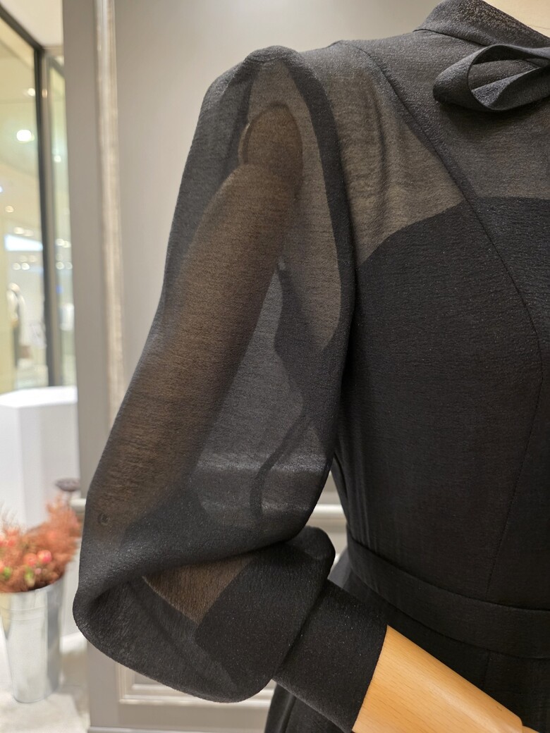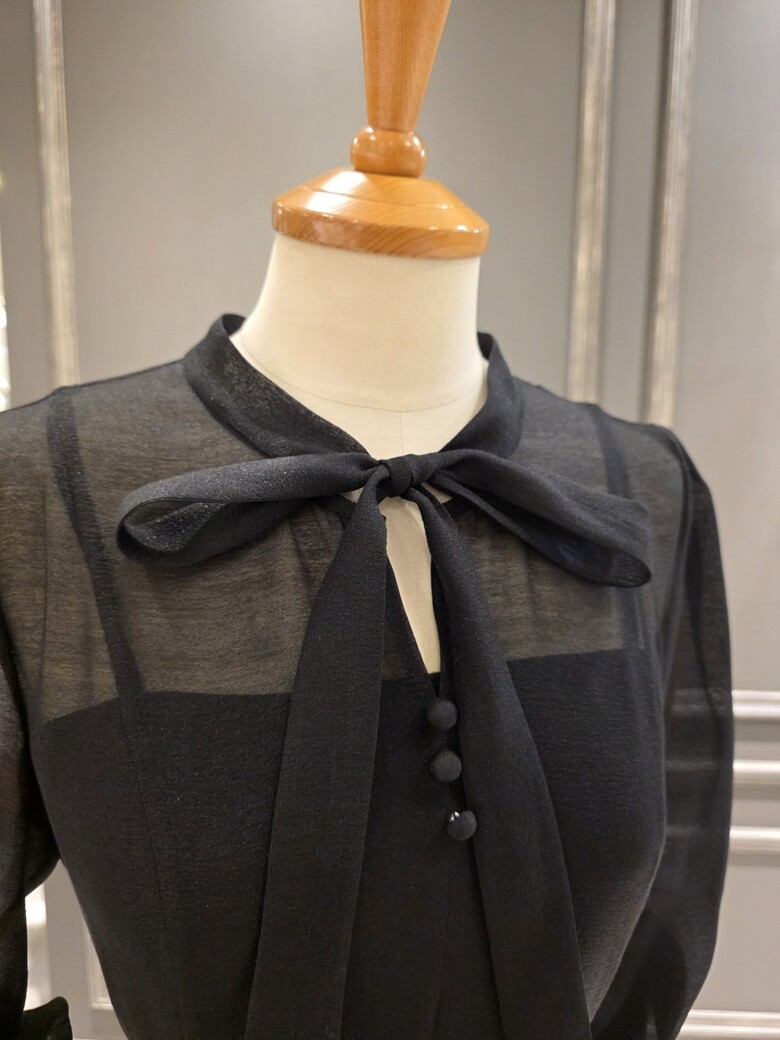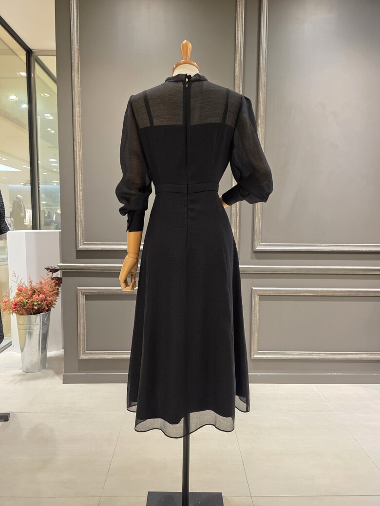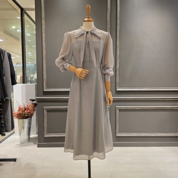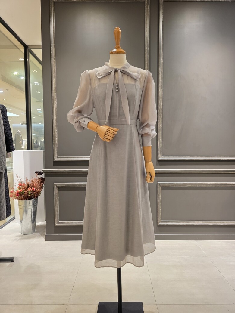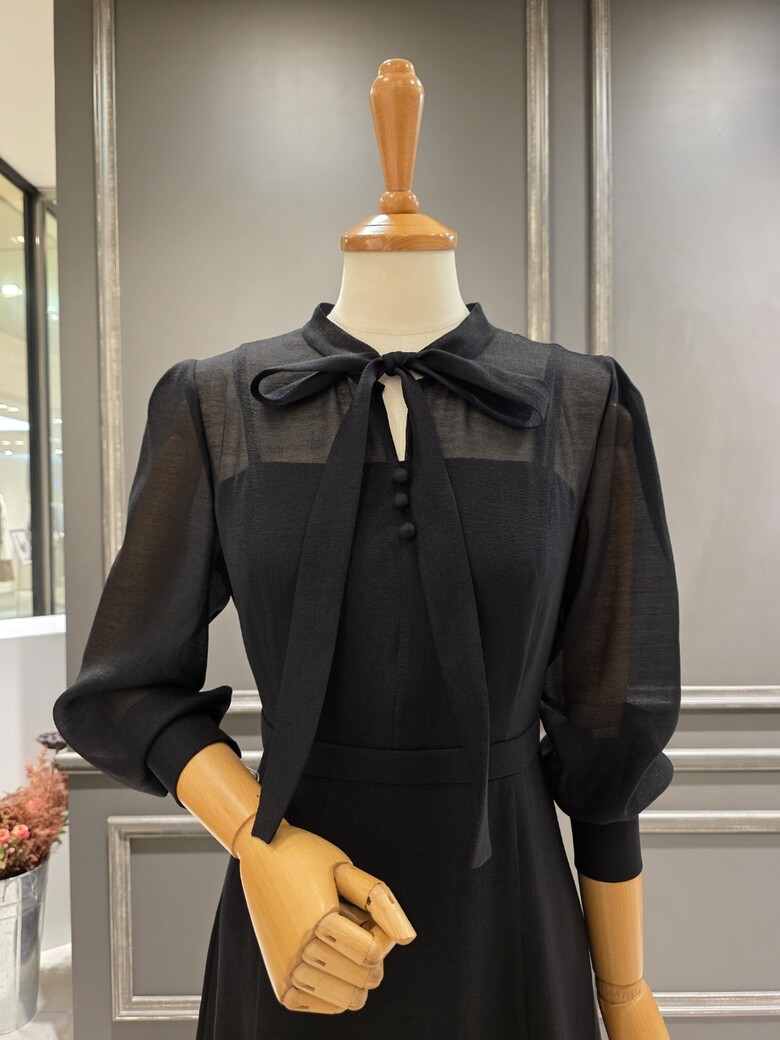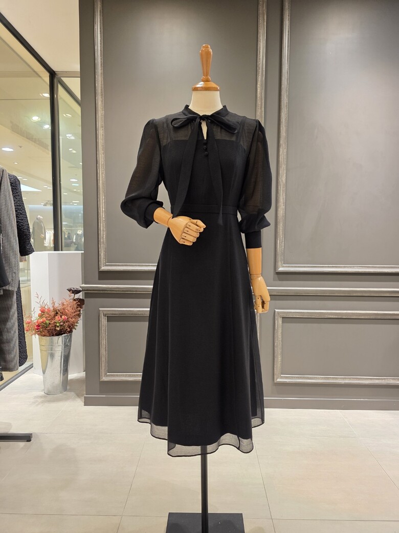 2025넌 F/W 신상품?은은한 광택감이 돋보이는?시스루 리본 원피스입니다