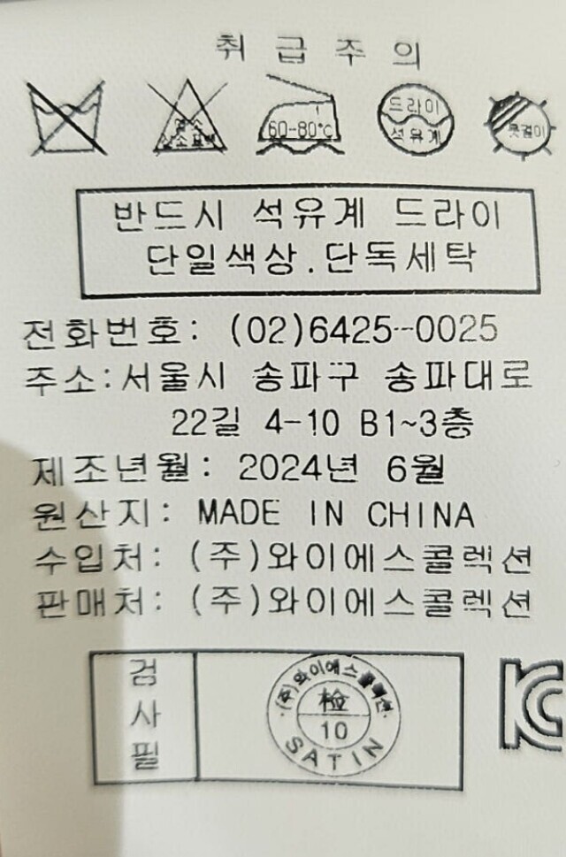 | 6. 세탁방법 및 취급시 주의사항 | 상품상세참조 |